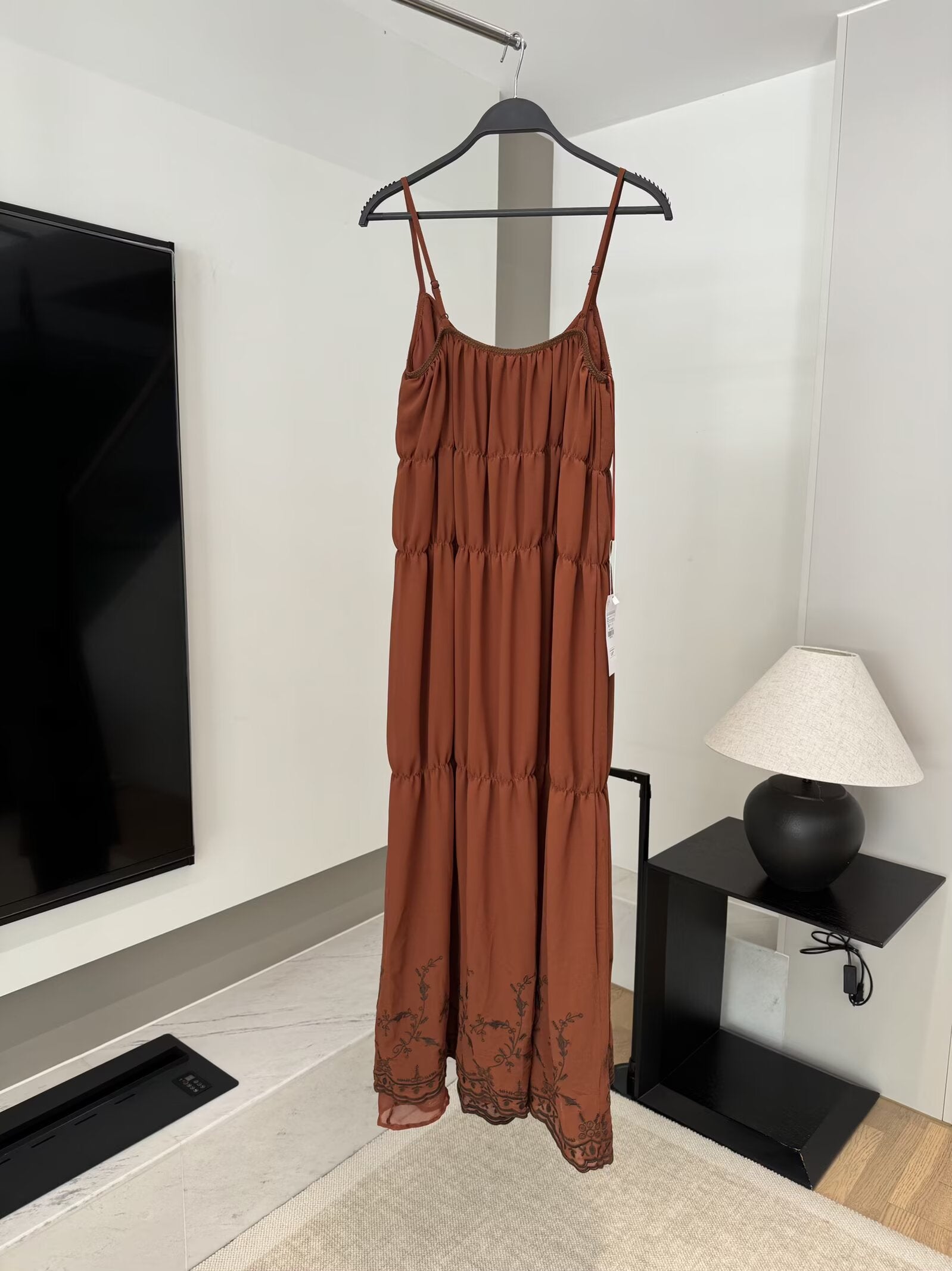 2025 Women's new fashion embroidered pleated suspender MIDI dress