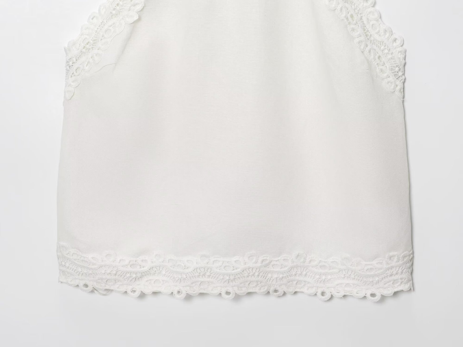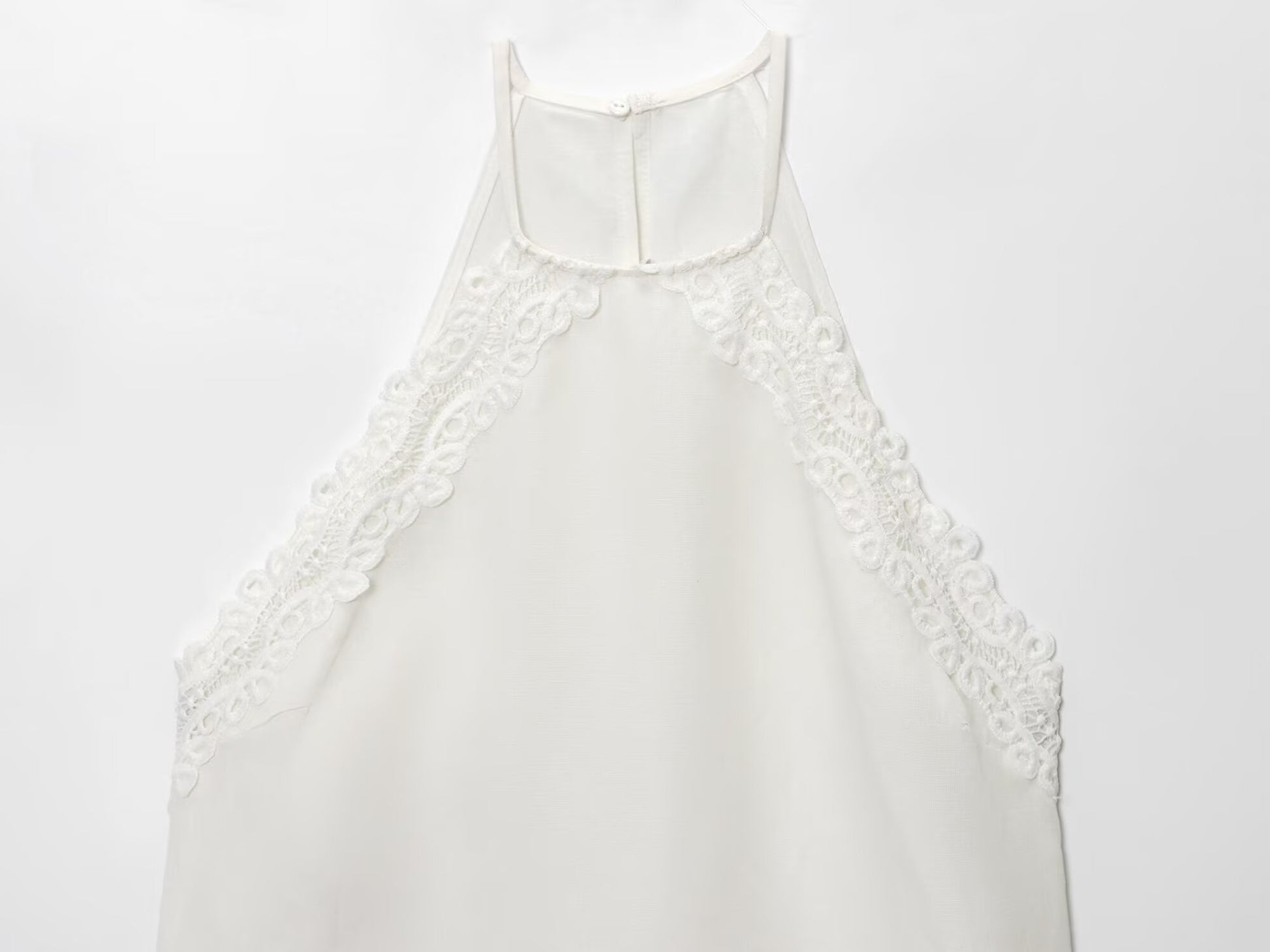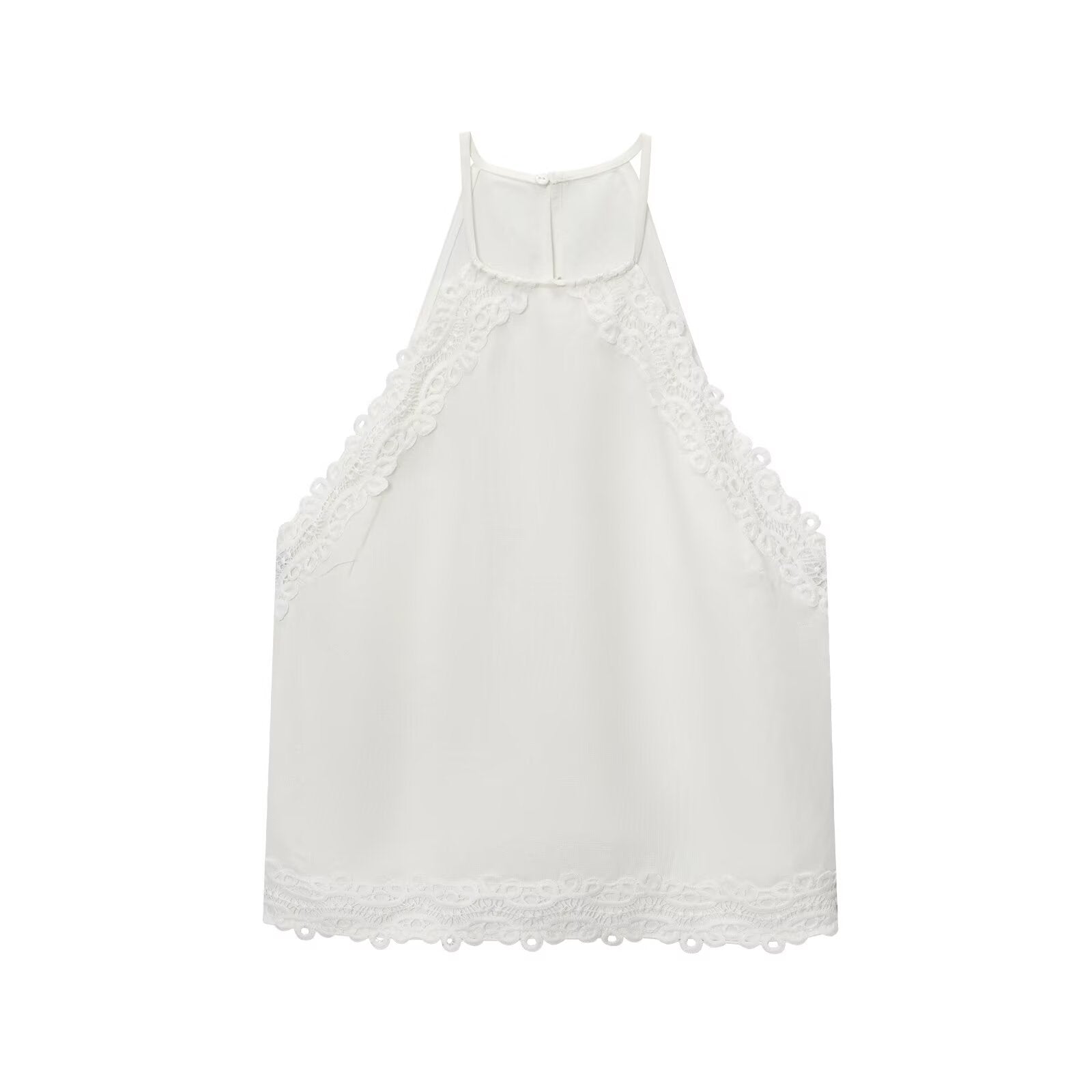 2025 Women's new sleeveless crochet stitch Split hanging neck top