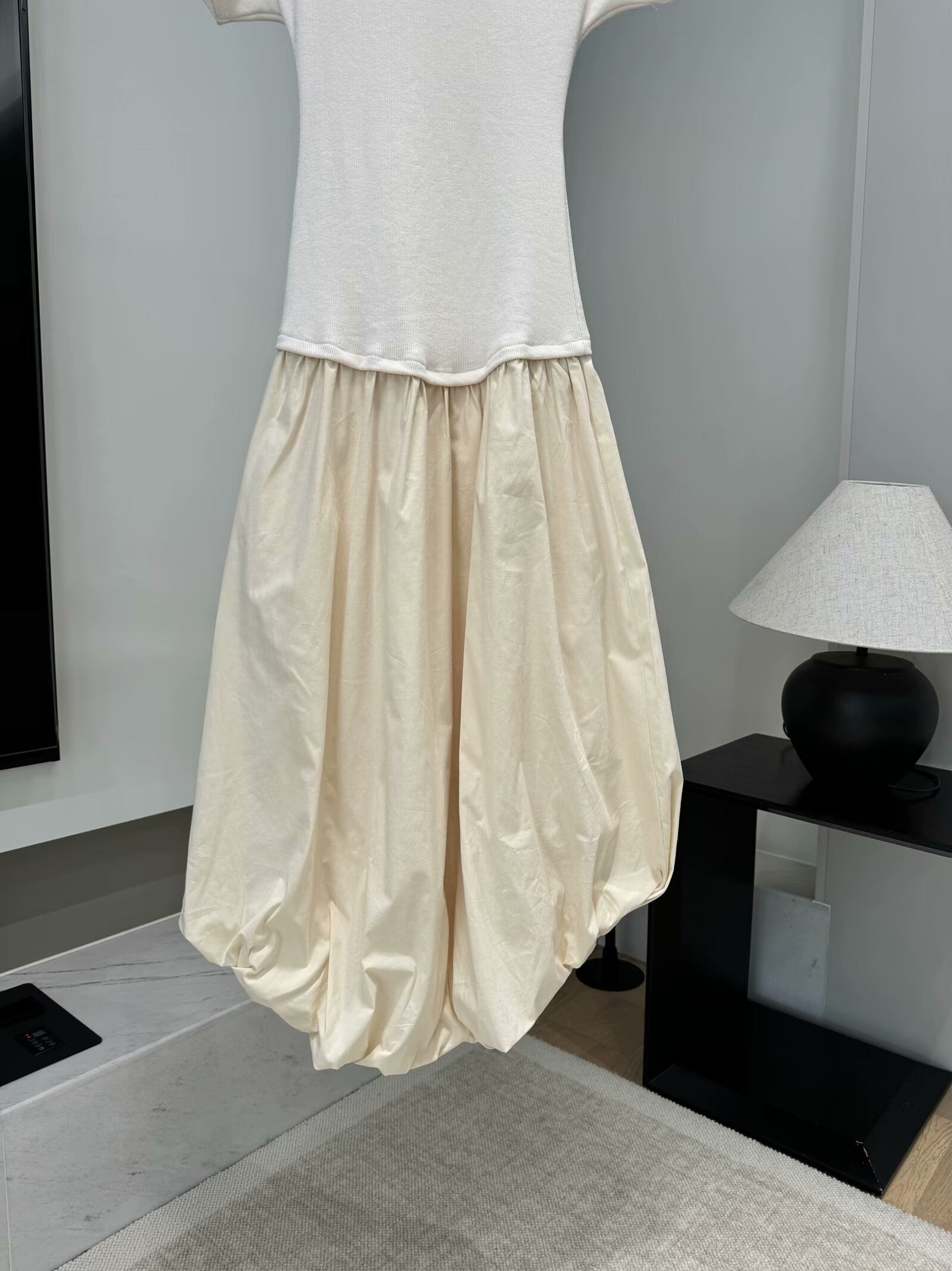 Ladies' new fashion balloon shaped elastic slim short sleeved patchwork MIDI dress