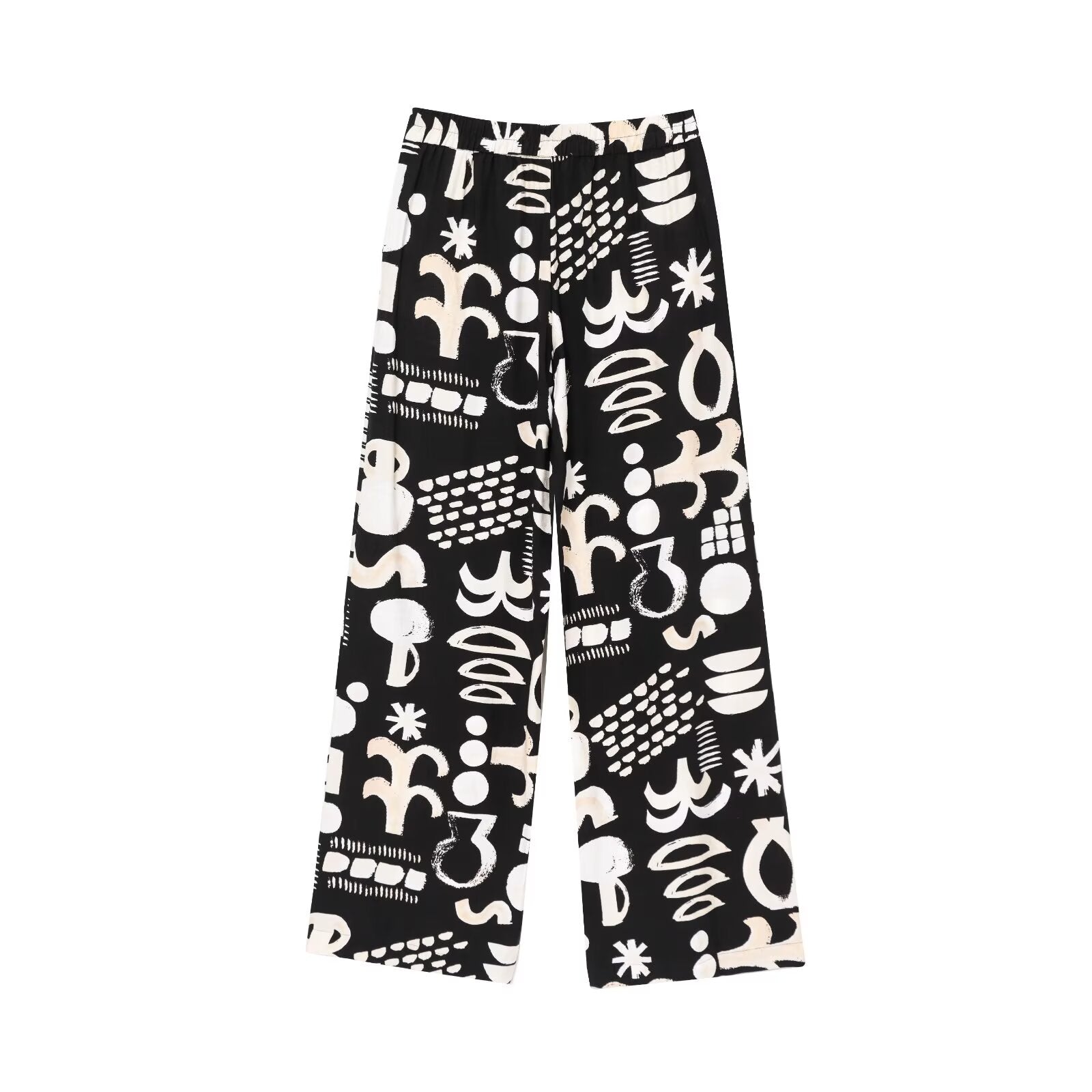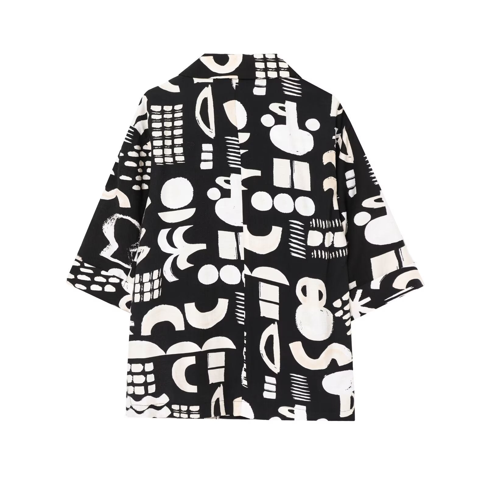 Ladies' new fashion double breasted printed suit jacket vintage short sleeved women's jacket chic top+Pants Women's suit