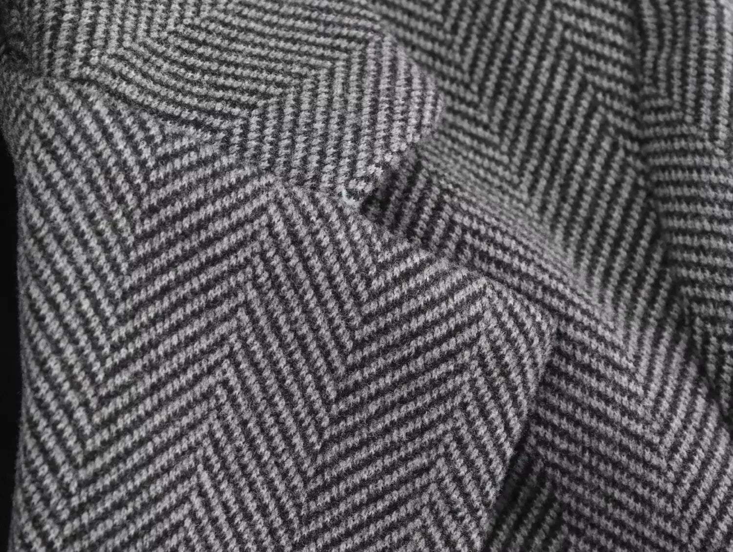 Ladies' new fashion flip design casual hooded patchwork herringbone diagonal suit coat retro long sleeved women's coat chic top