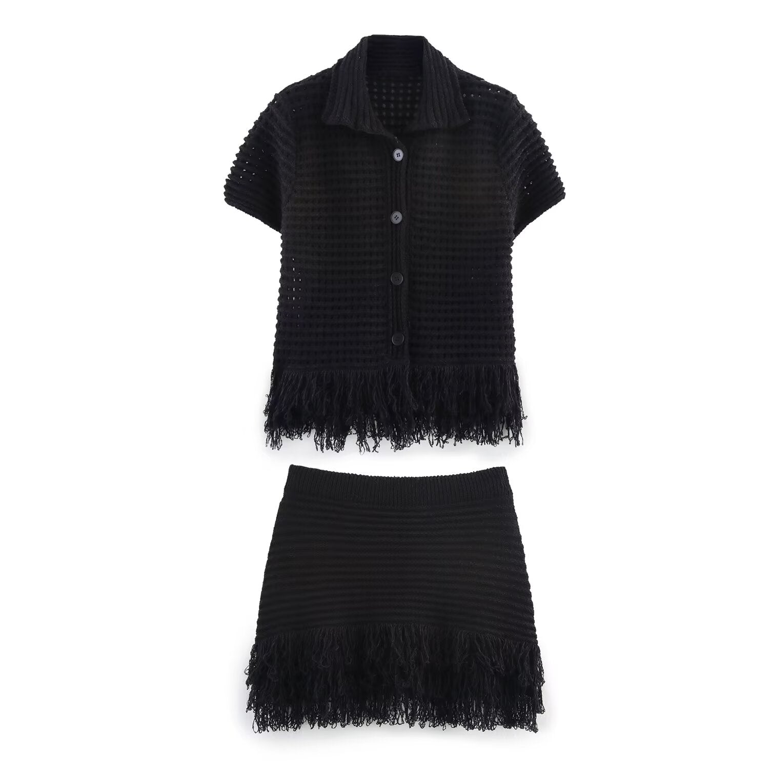 Ladies' new fashion slim single breasted plaid knit top+Skirts Women's suit
