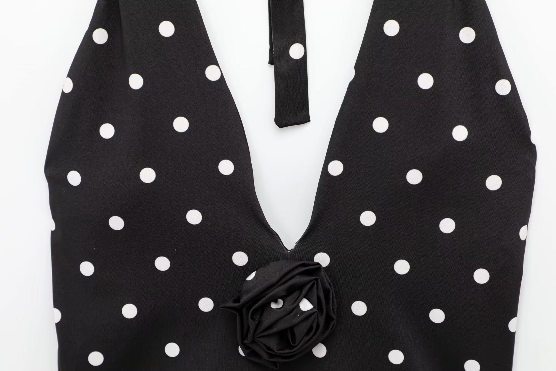 Ladies' new fashion tight polka dot print hanging neck swimsuit retro sleeveless women's swimsuit