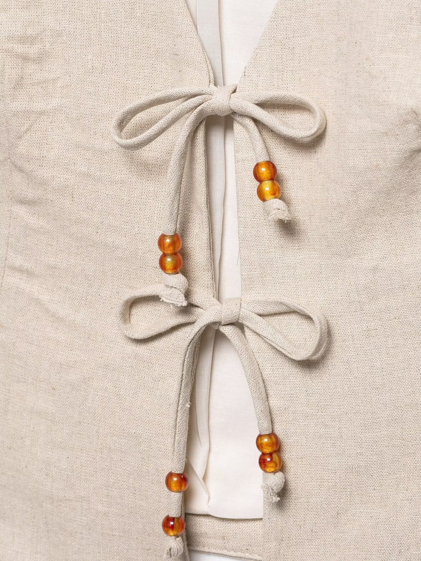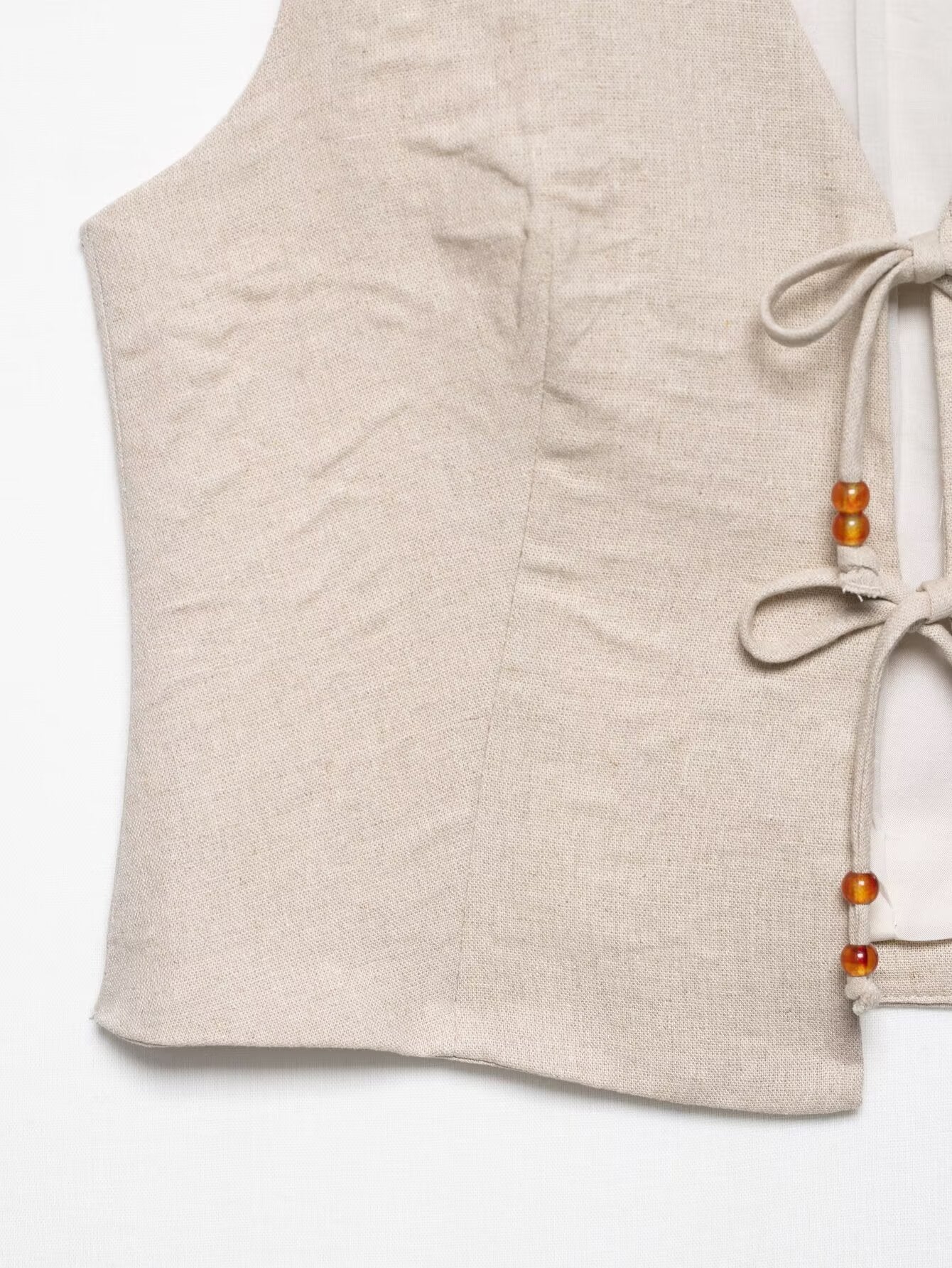 Set woman 2 pieces new short sleeveless linen blend V-neck vest+shorts suit