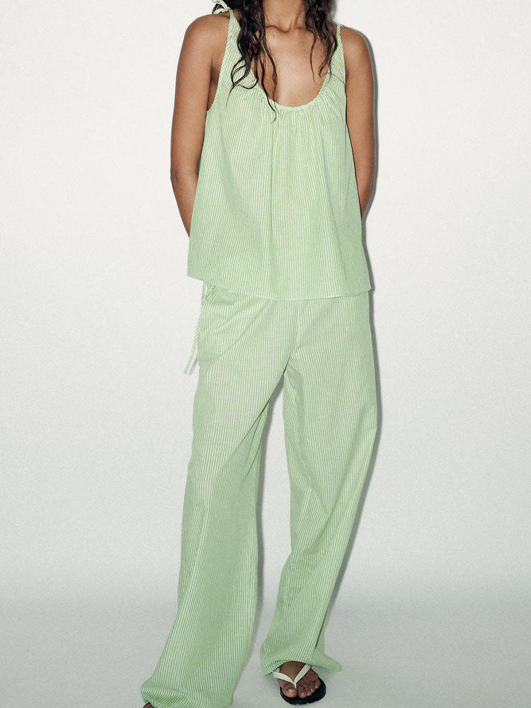 Suit women's 2 pieces 2025 fashion striped suspender top+pants women's suit