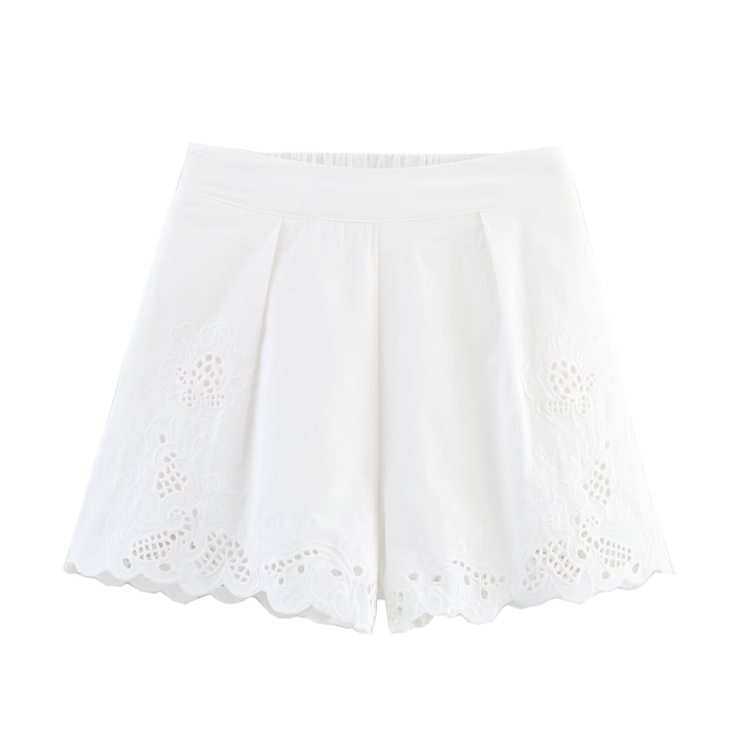 Suit women's 2 pieces 2025 fashion vertical lace embroidered shirt retro women+shorts women's suit