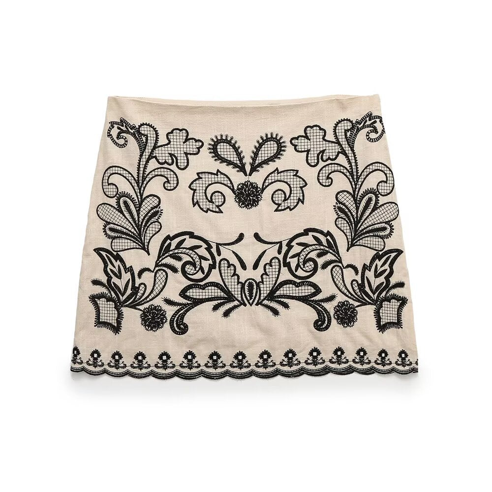 suit Women's 2 pieces new fashion short embroidered hanging neck top+Skirts suit