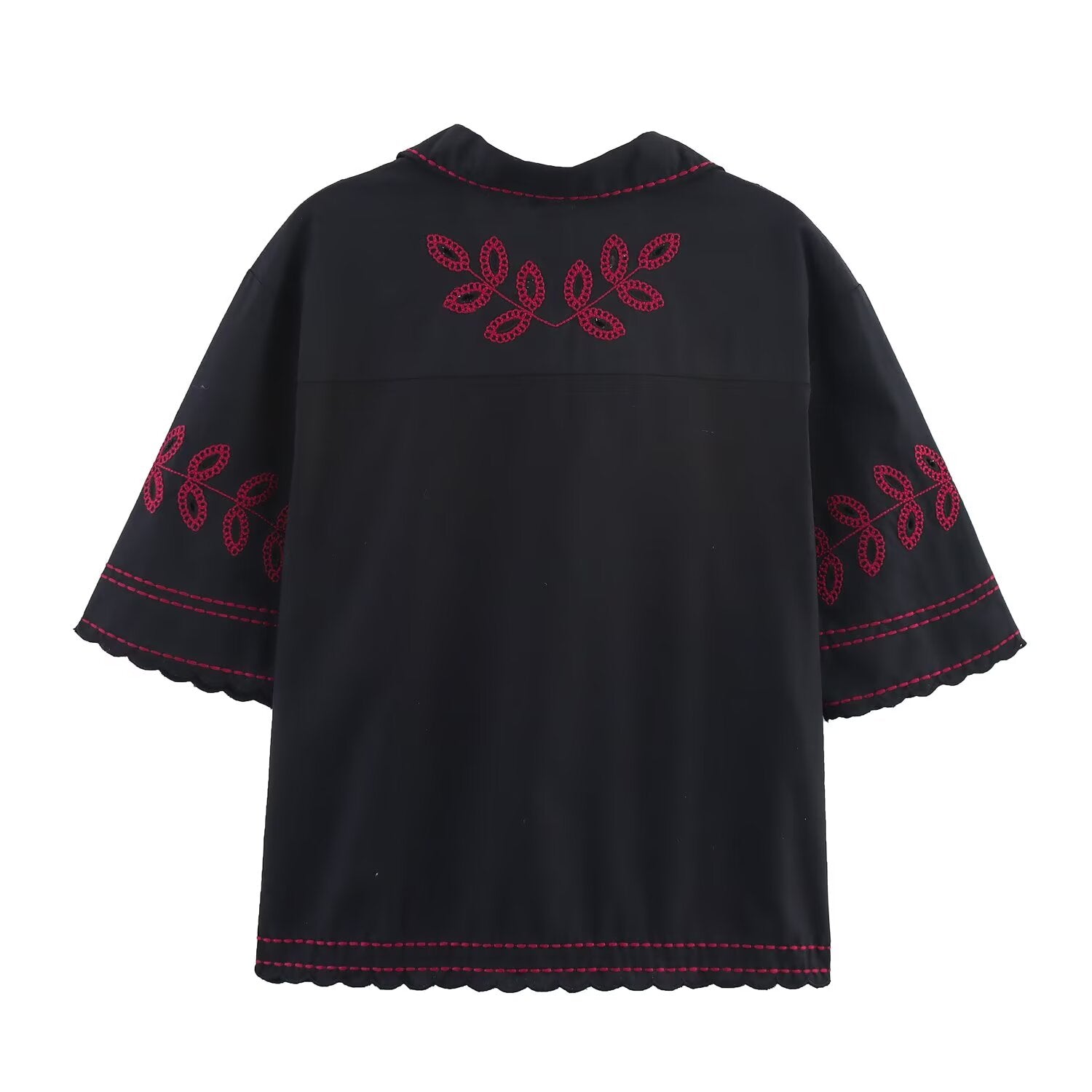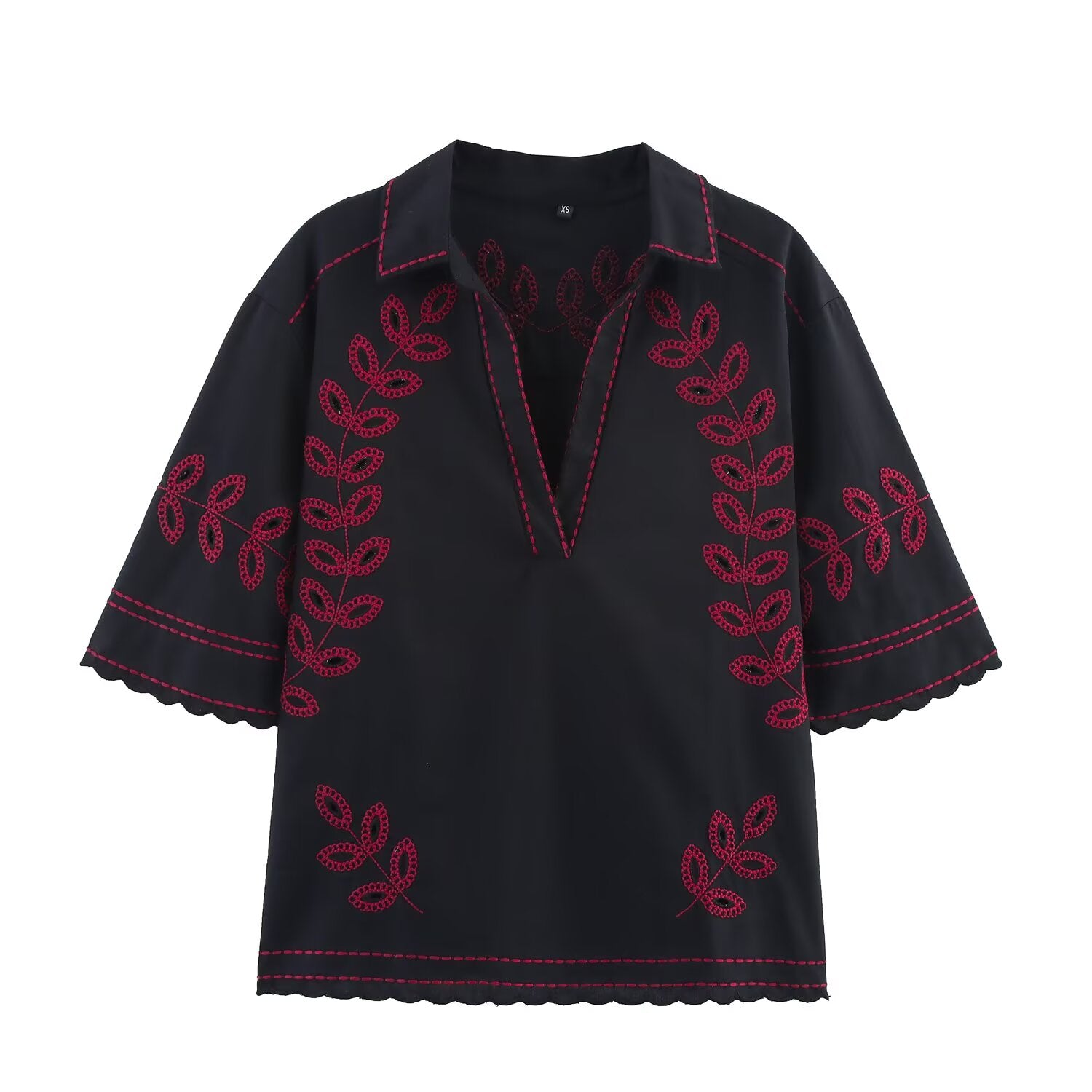 suit Women's 2 pieces new short sleeved lapel embroidered shirt+ Shorts suit