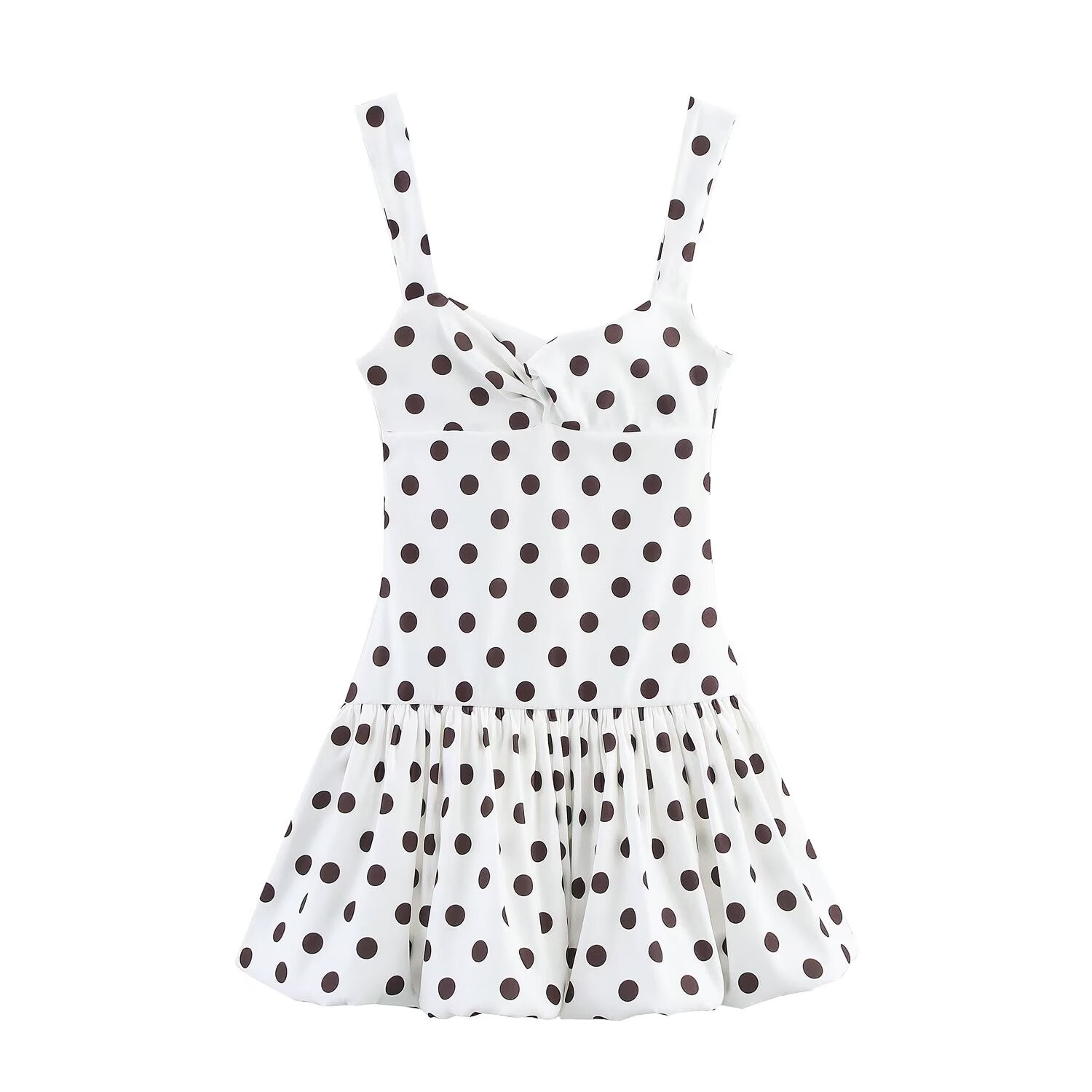 Women's' New Fashion balloon version polka dot printed Wide shoulder strap mini dress