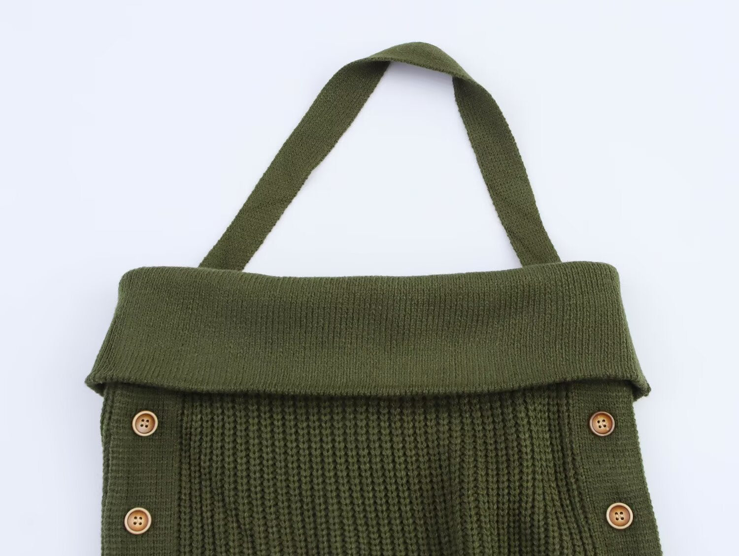 Women's new fashion button up decoration hanging neck collar strapless knit top