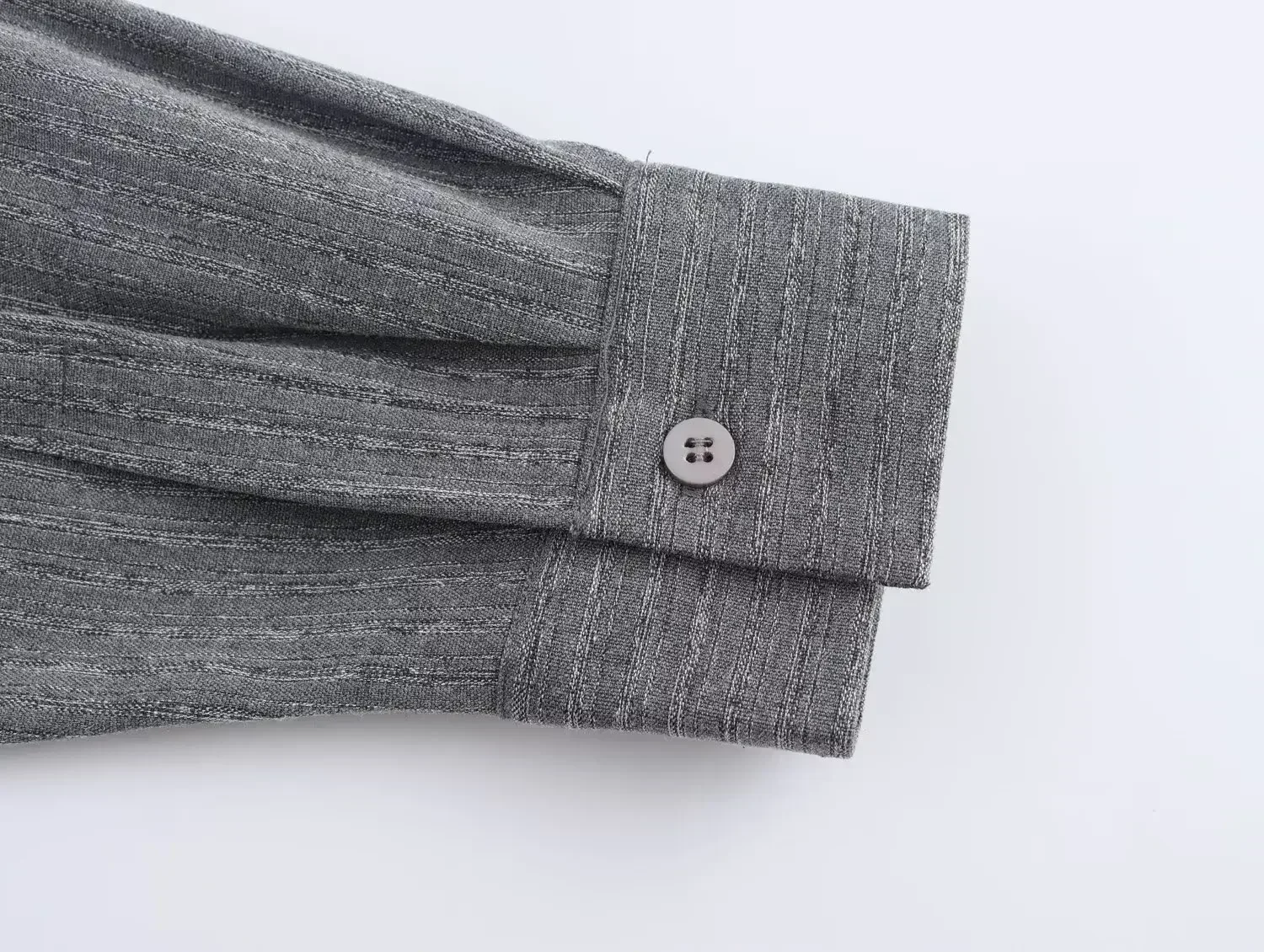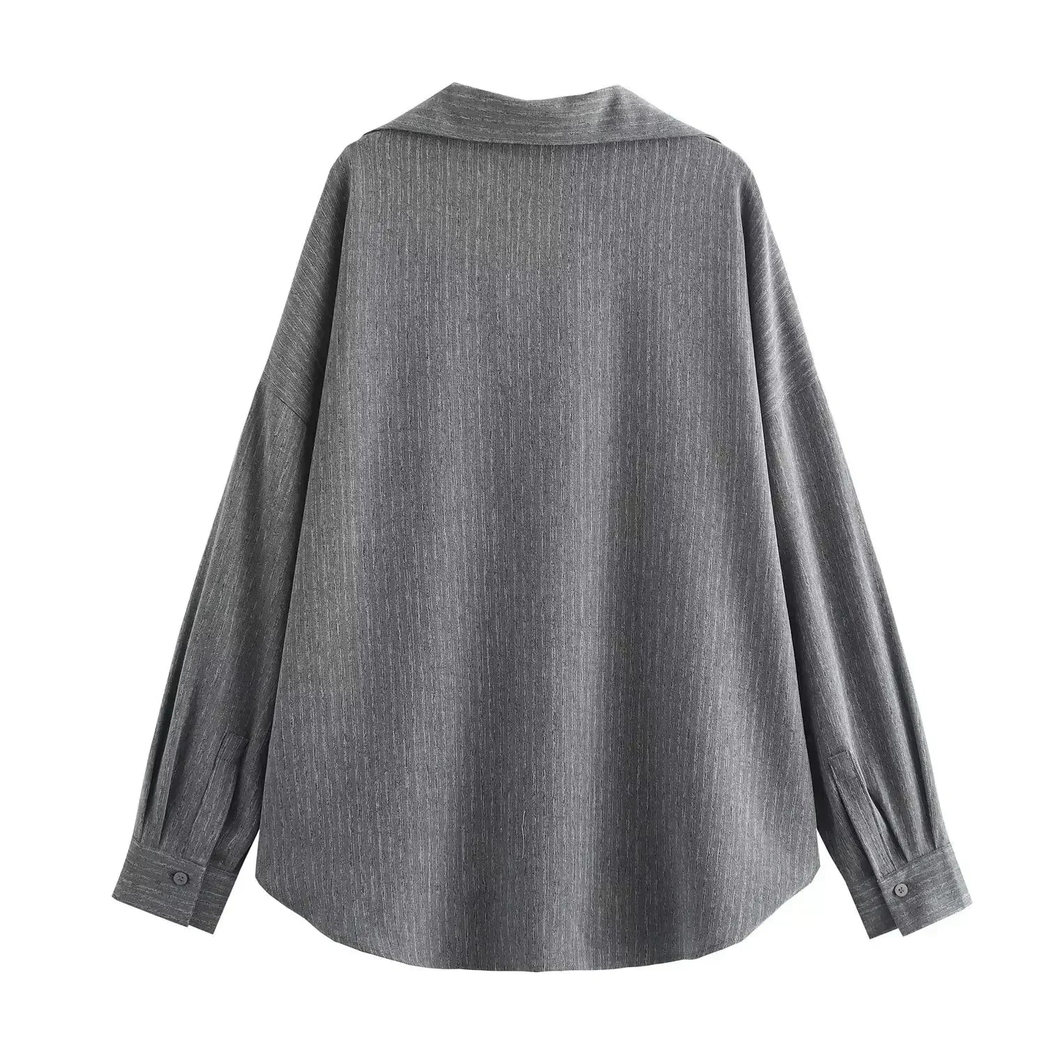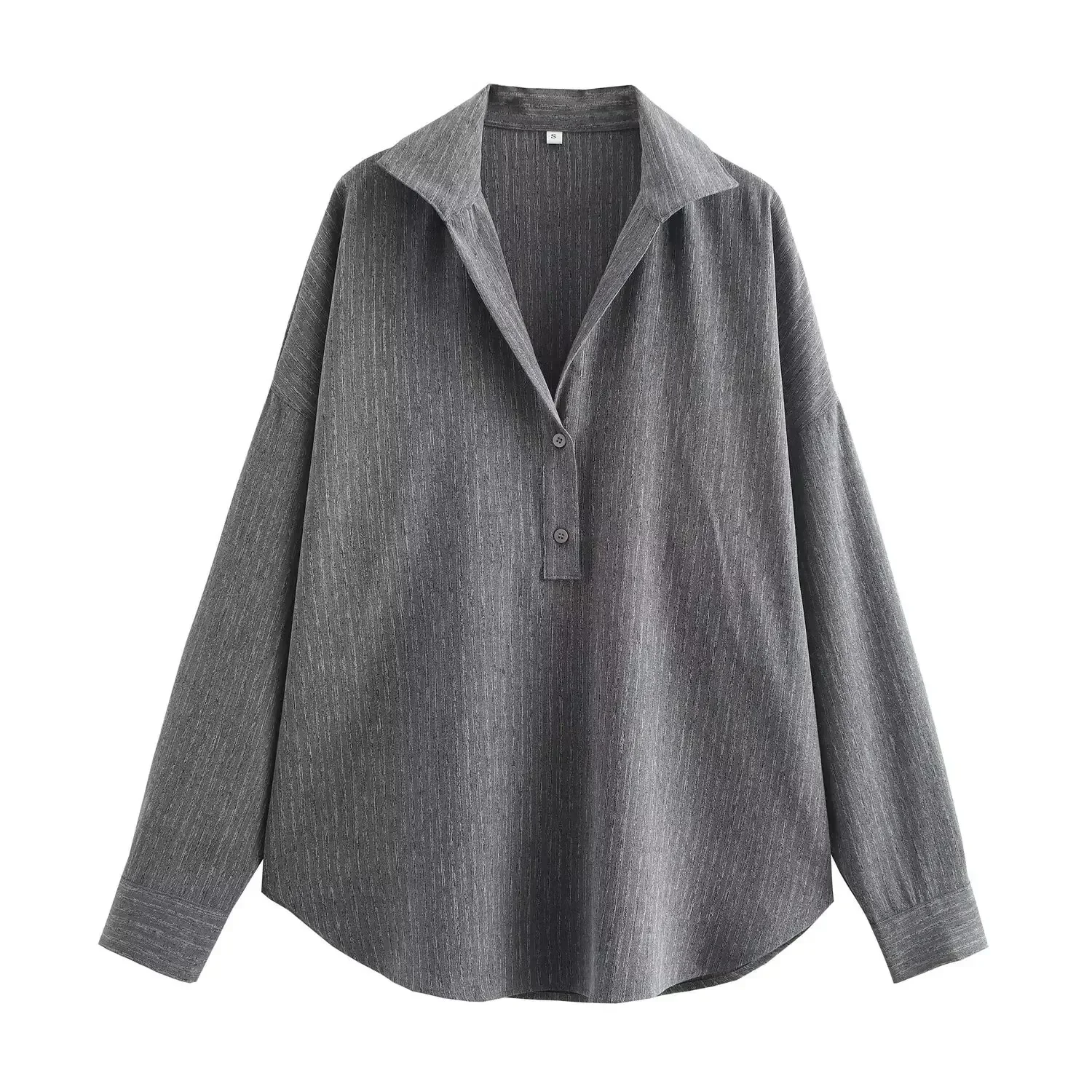 Women's new fashion button up decoration loose striped casual polo shirt collar shirt retro long sleeved women's shirt