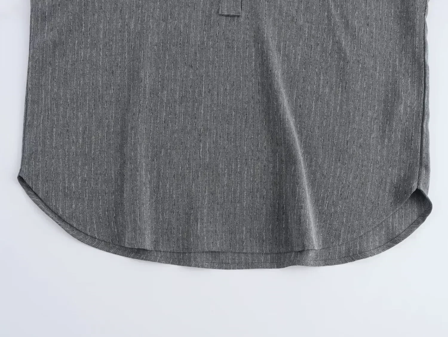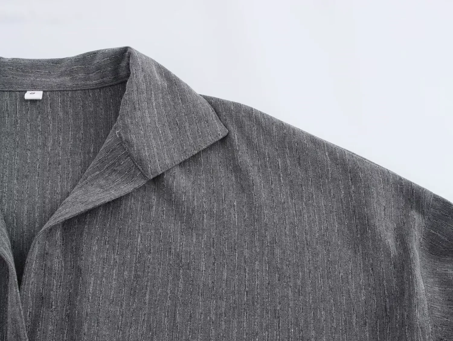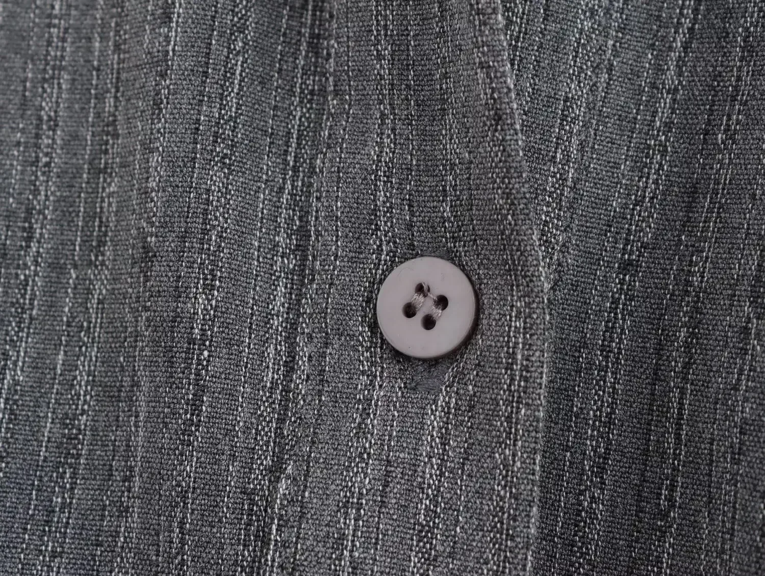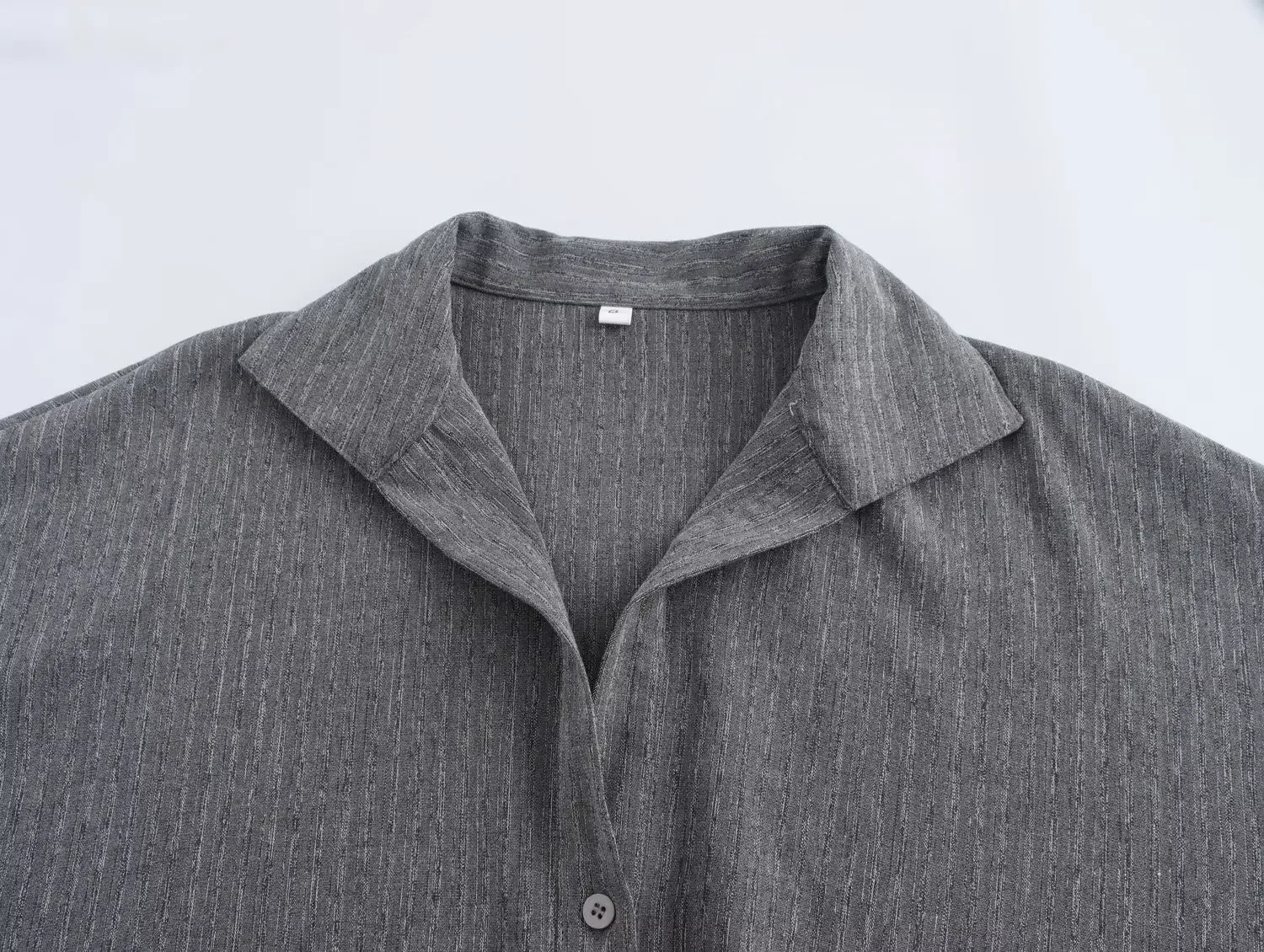 Women's new fashion button up decoration loose striped casual polo shirt collar shirt retro long sleeved women's shirt