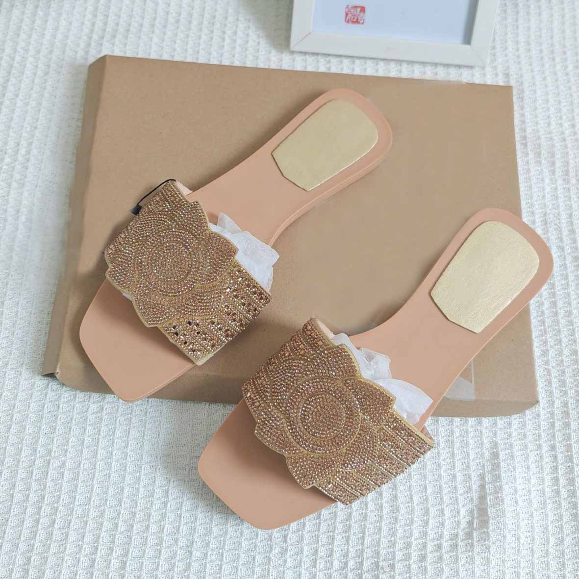 Women's New Fashion Casual Joker Flat Shoes Rhinestone Slippers Word Sandals Women.