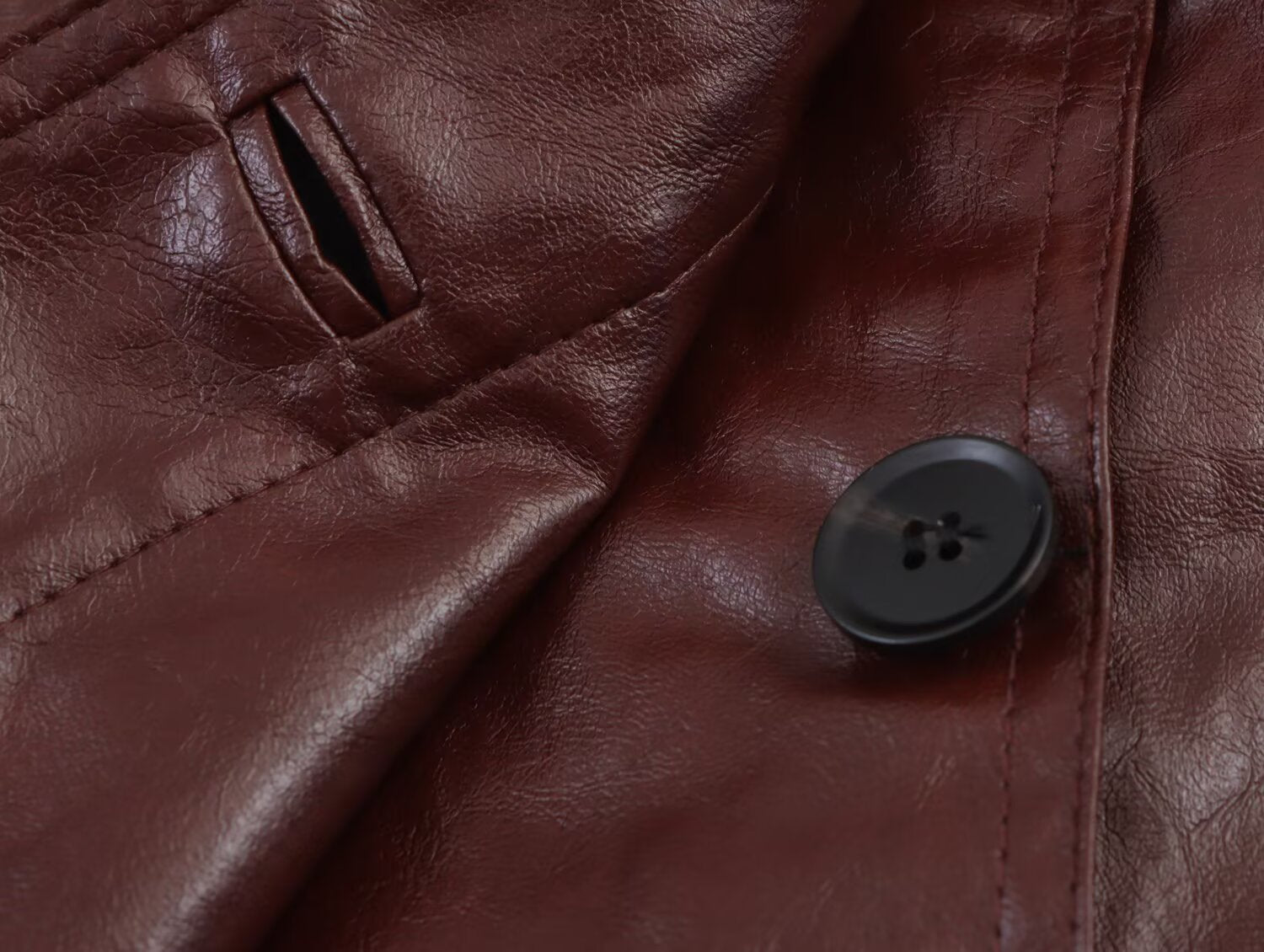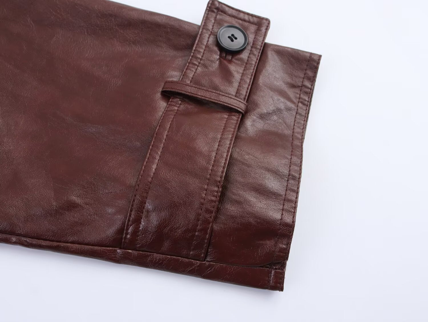 Women's new fashion casual lapel shiny Faux Leather jacket Coat