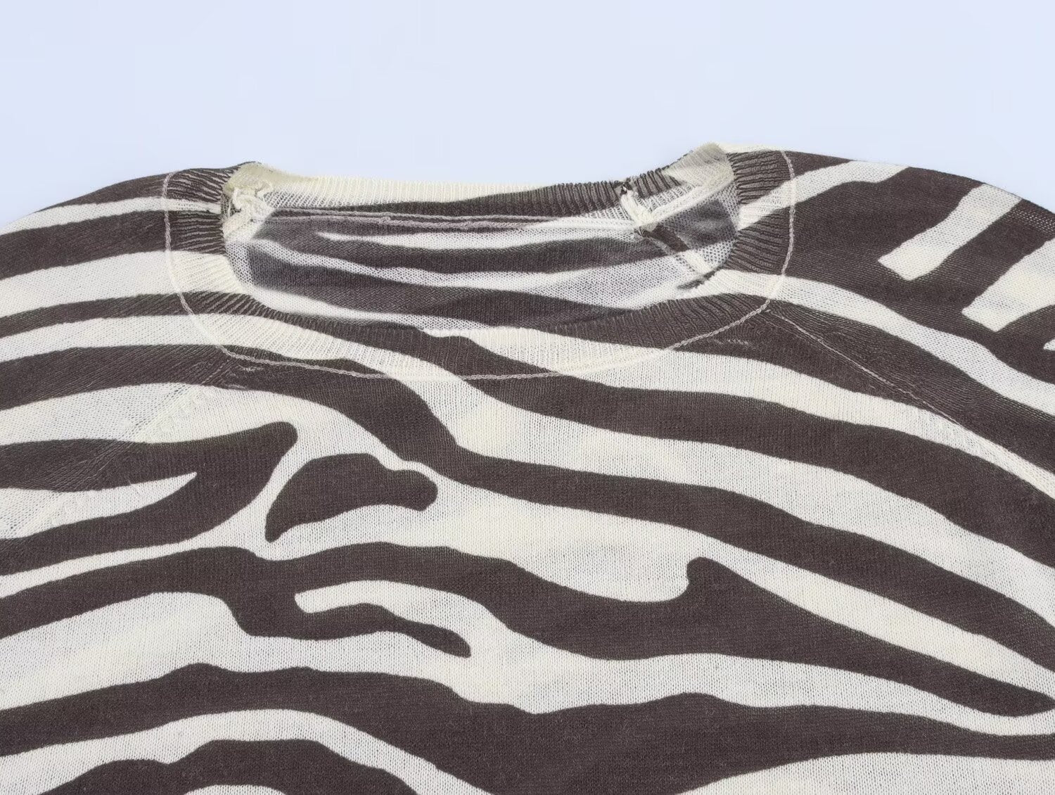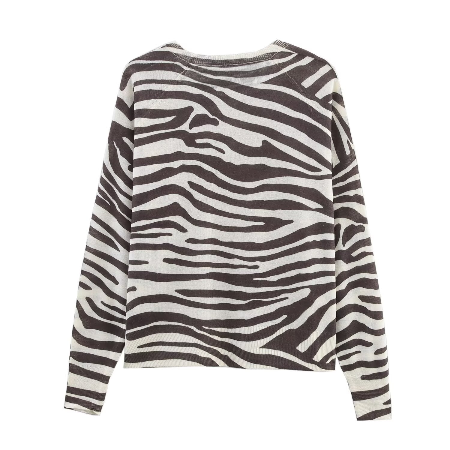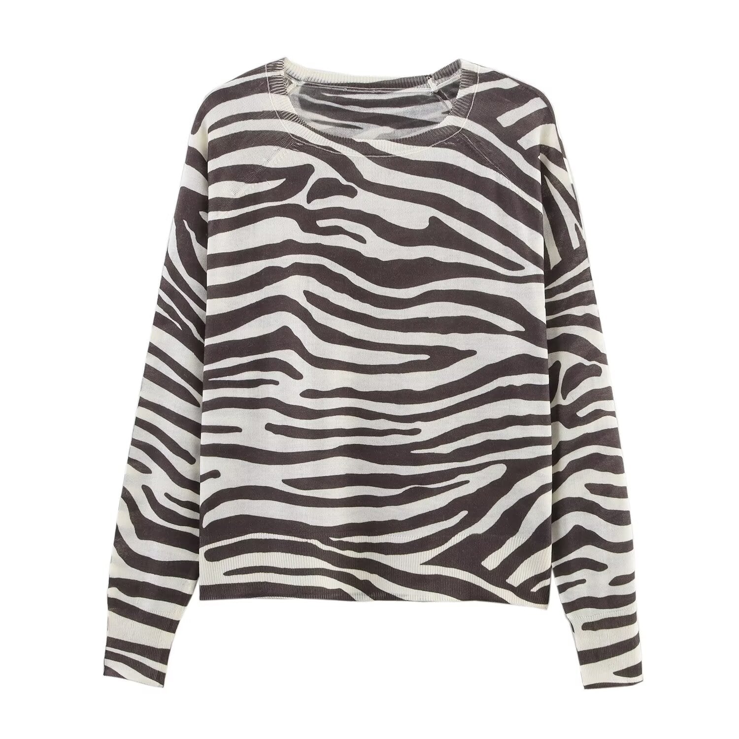 Women's New Fashion casual O-Neck striped fine needle knitted top