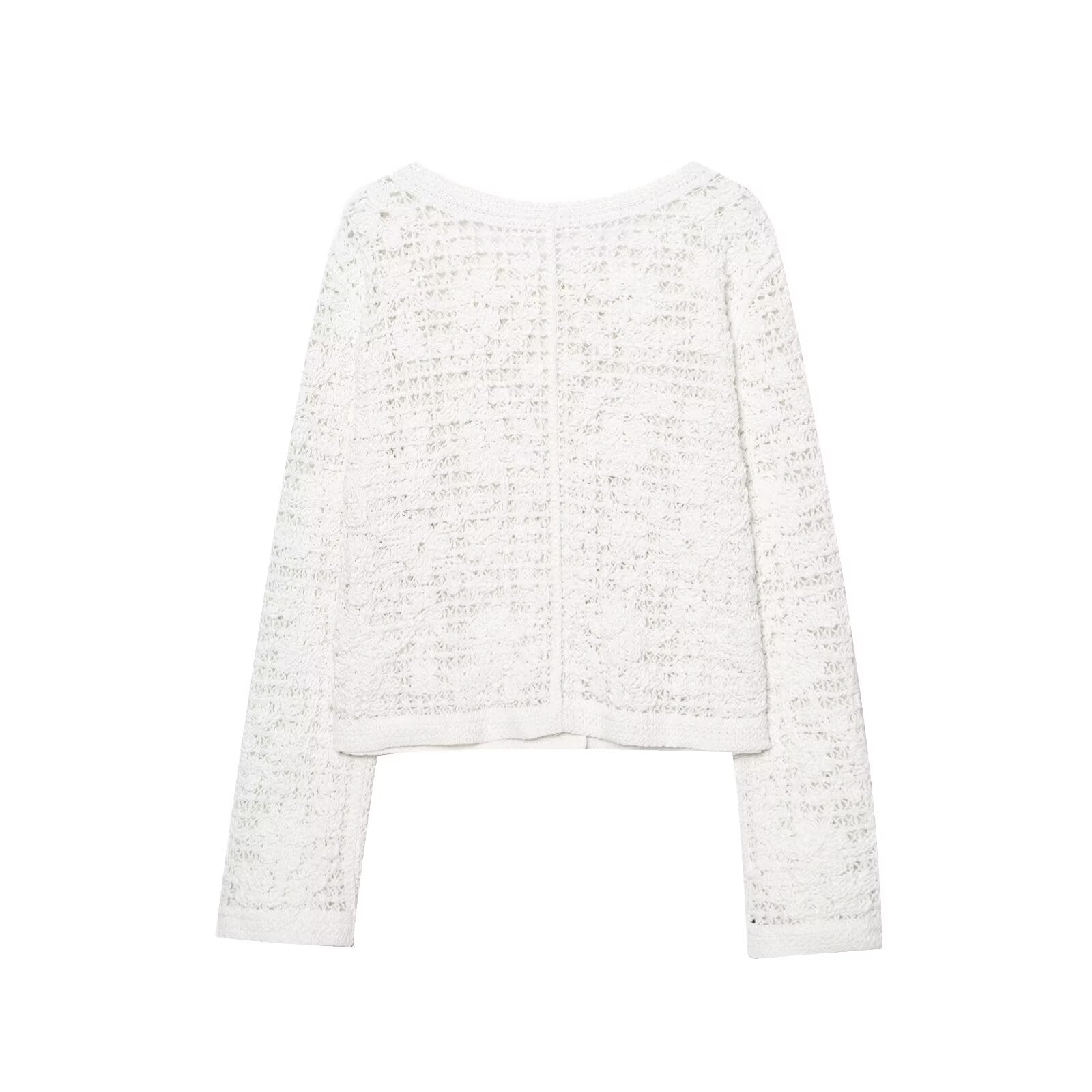 Women's new fashion Casual short Single breasted long sleeved crochet coat