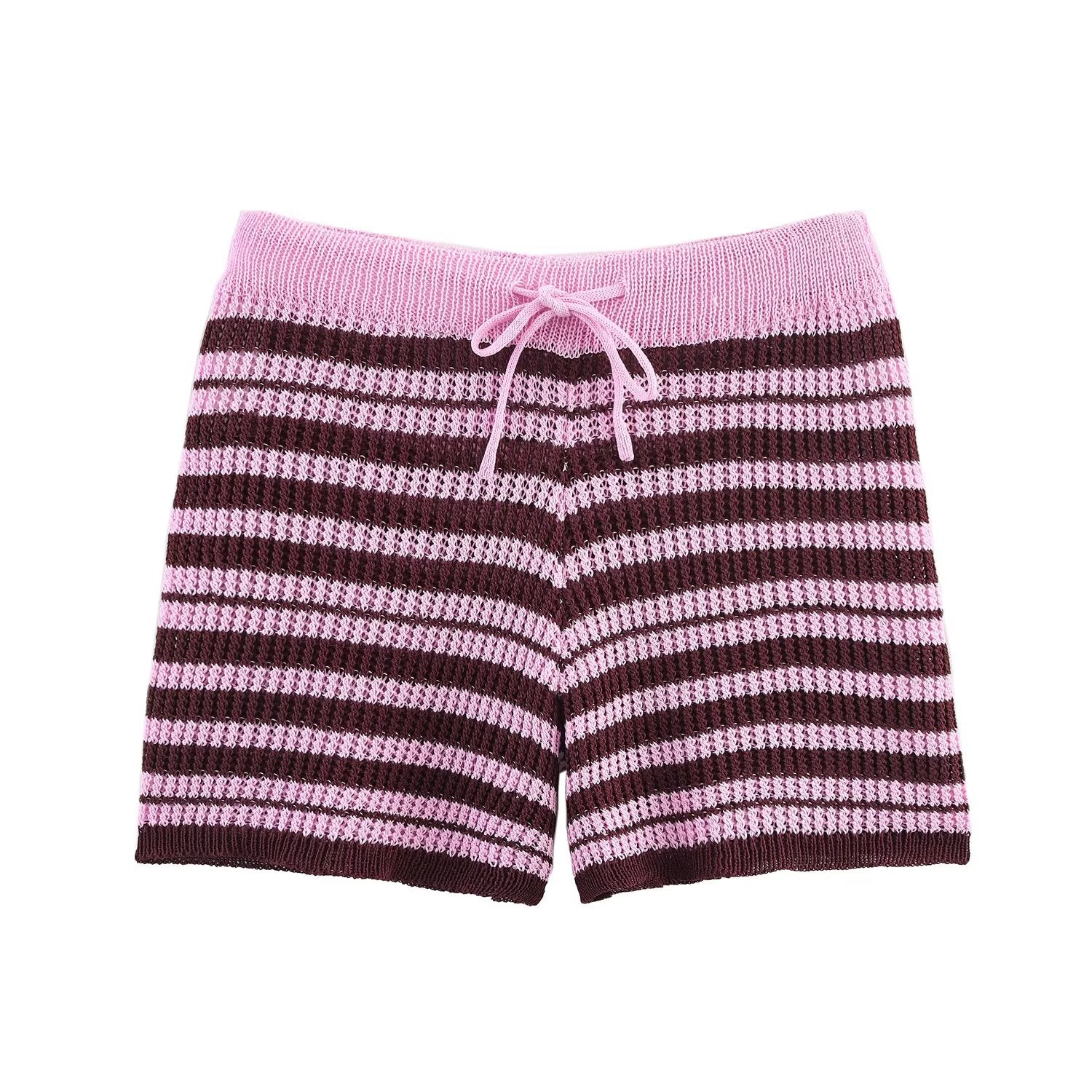 Women's new fashion casual single breasted striped knitted polo shirt coat+Shorts Women's suit