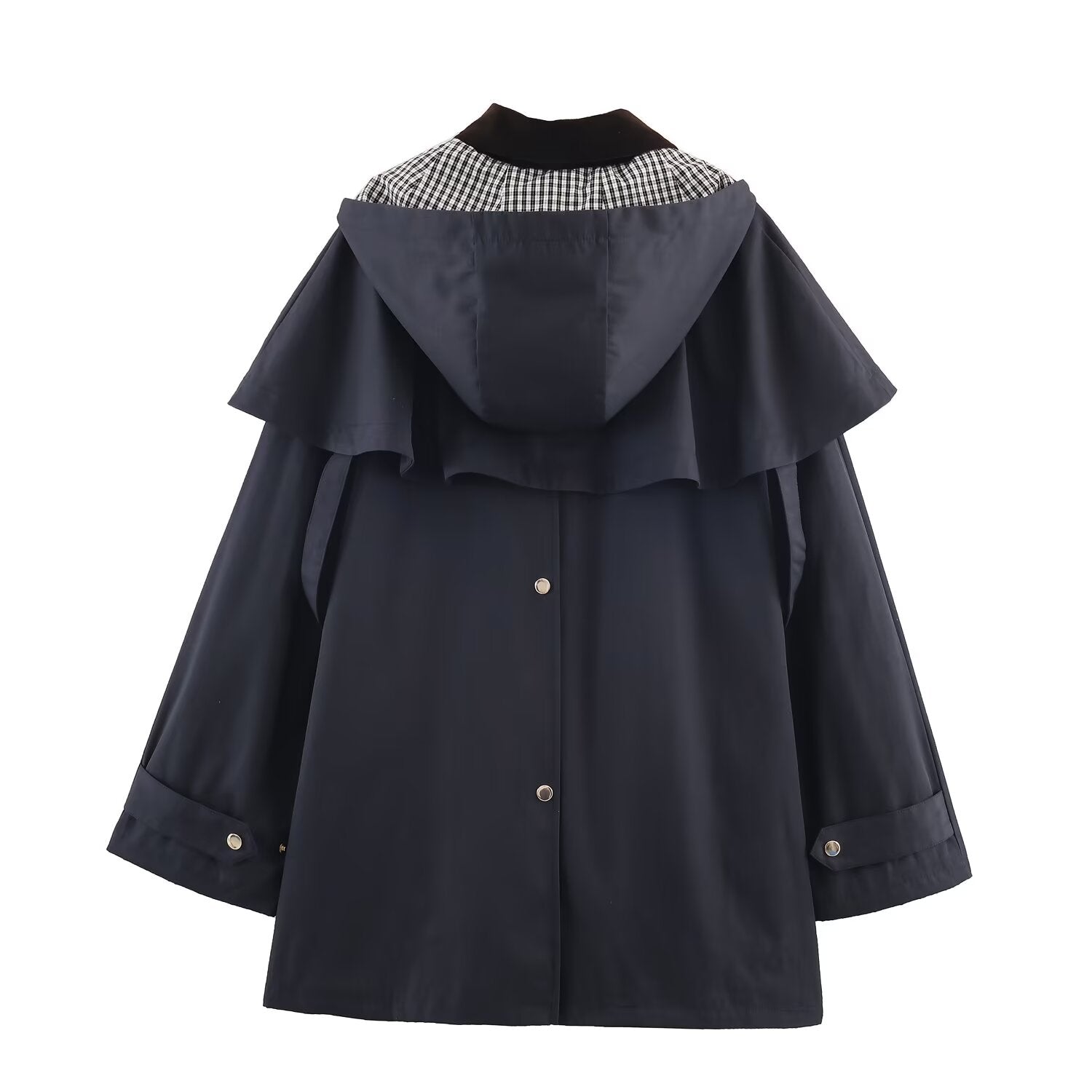 Women's new fashion contrasting collar loose hooded windbreaker Coat