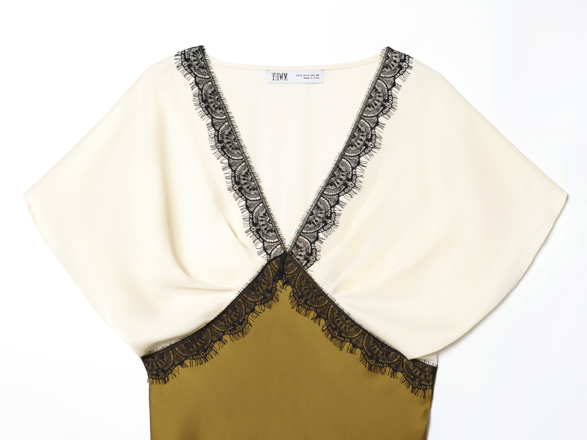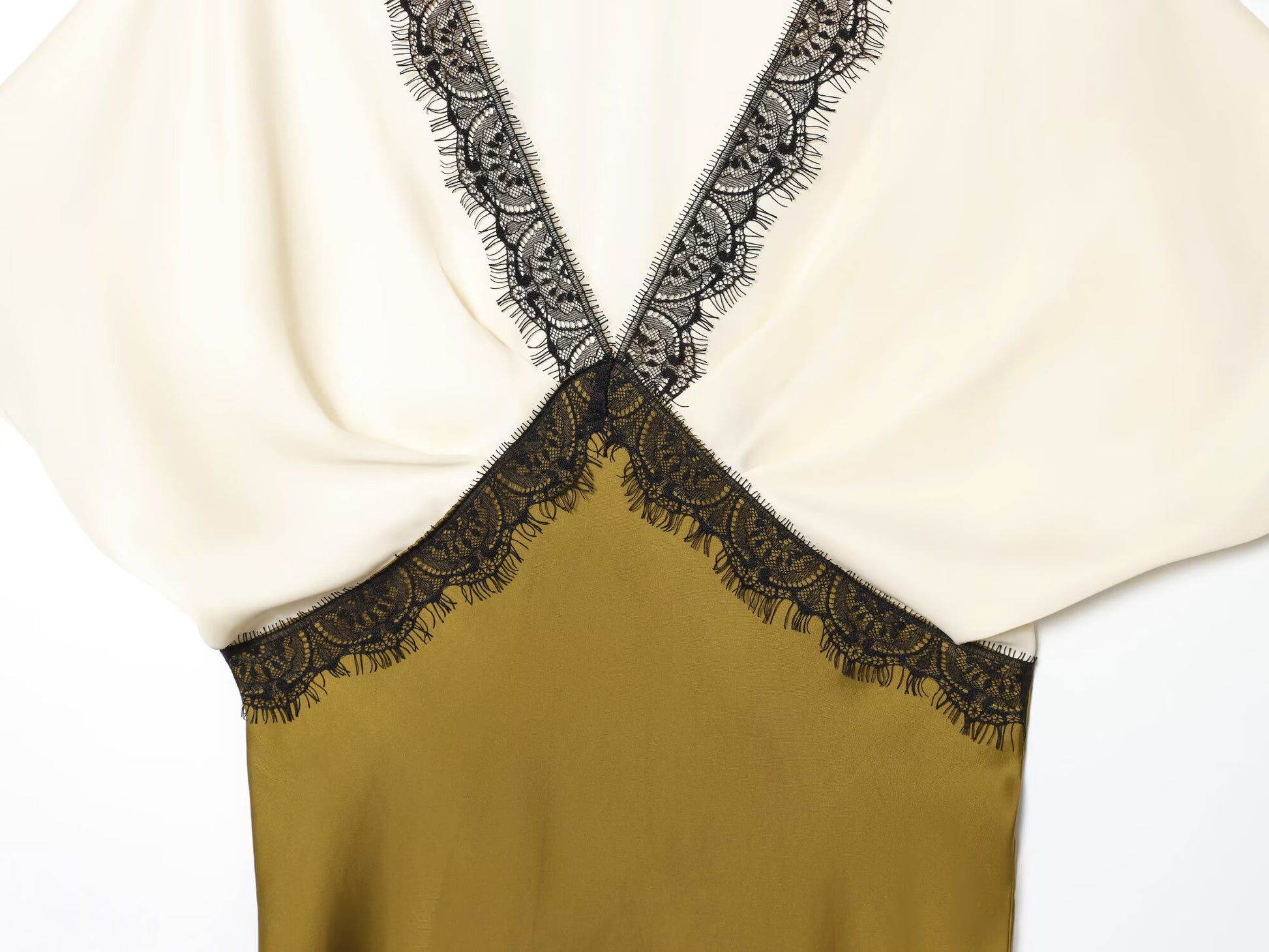 Women's new fashion contrasting lace V-neck satin texture MIDI dress