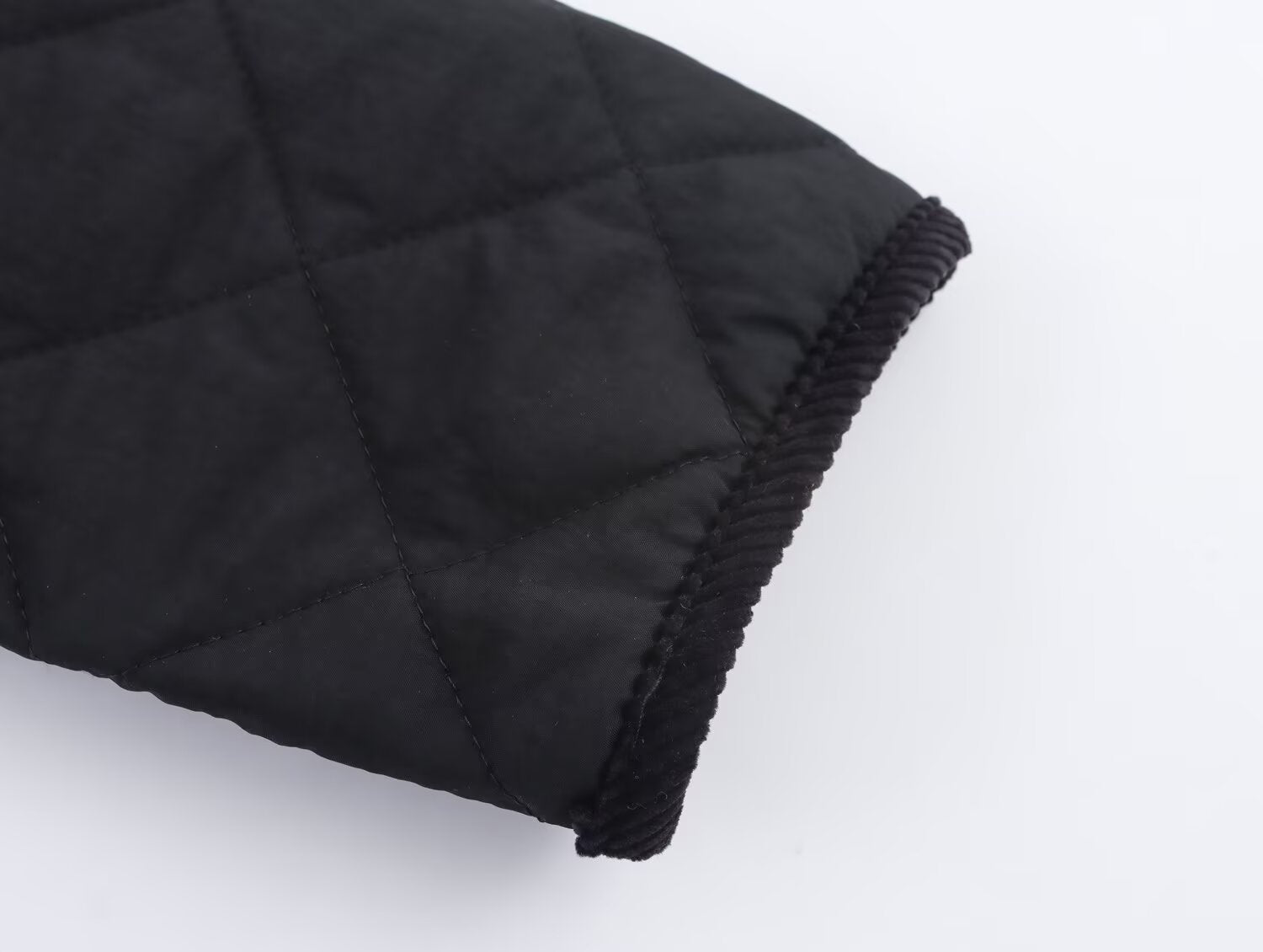 Women's New Fashion Corduroy Short Quilted Nylon Lapel Coat