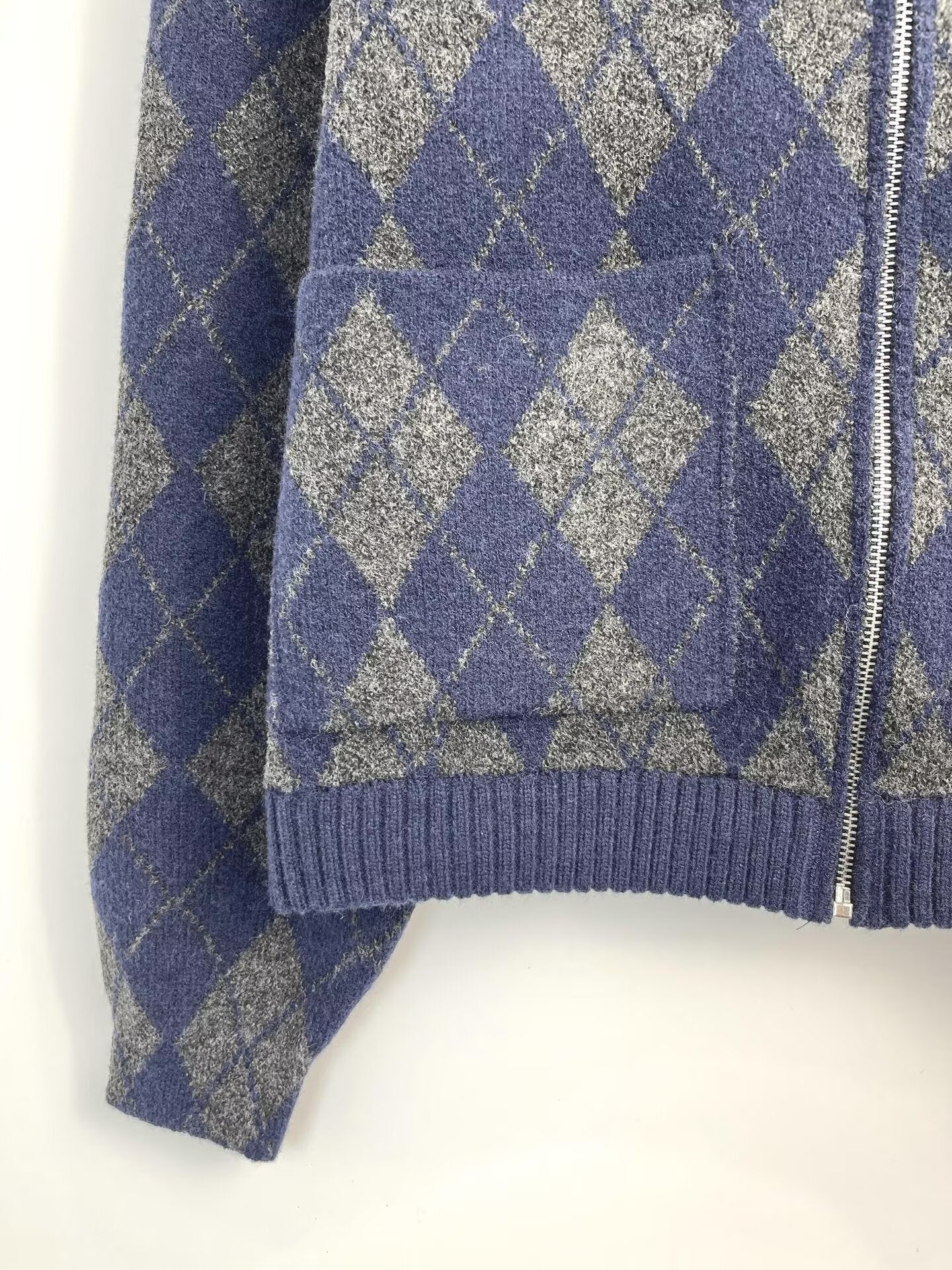Women's new fashion diamond checkered knitted pilot jacket Coat