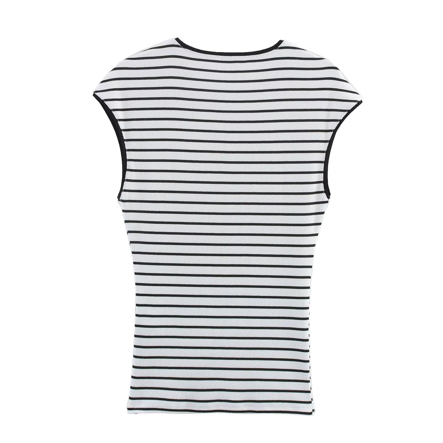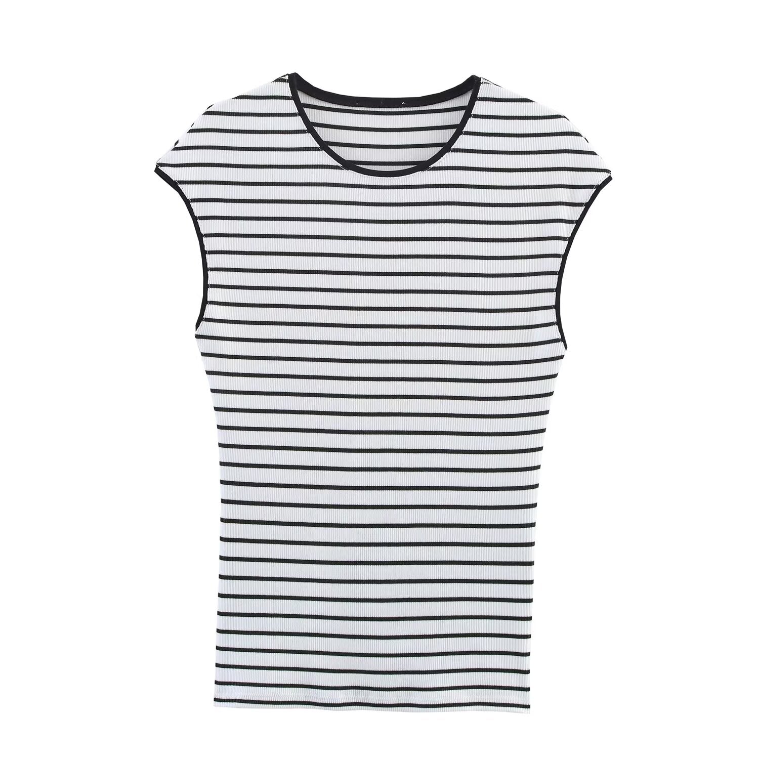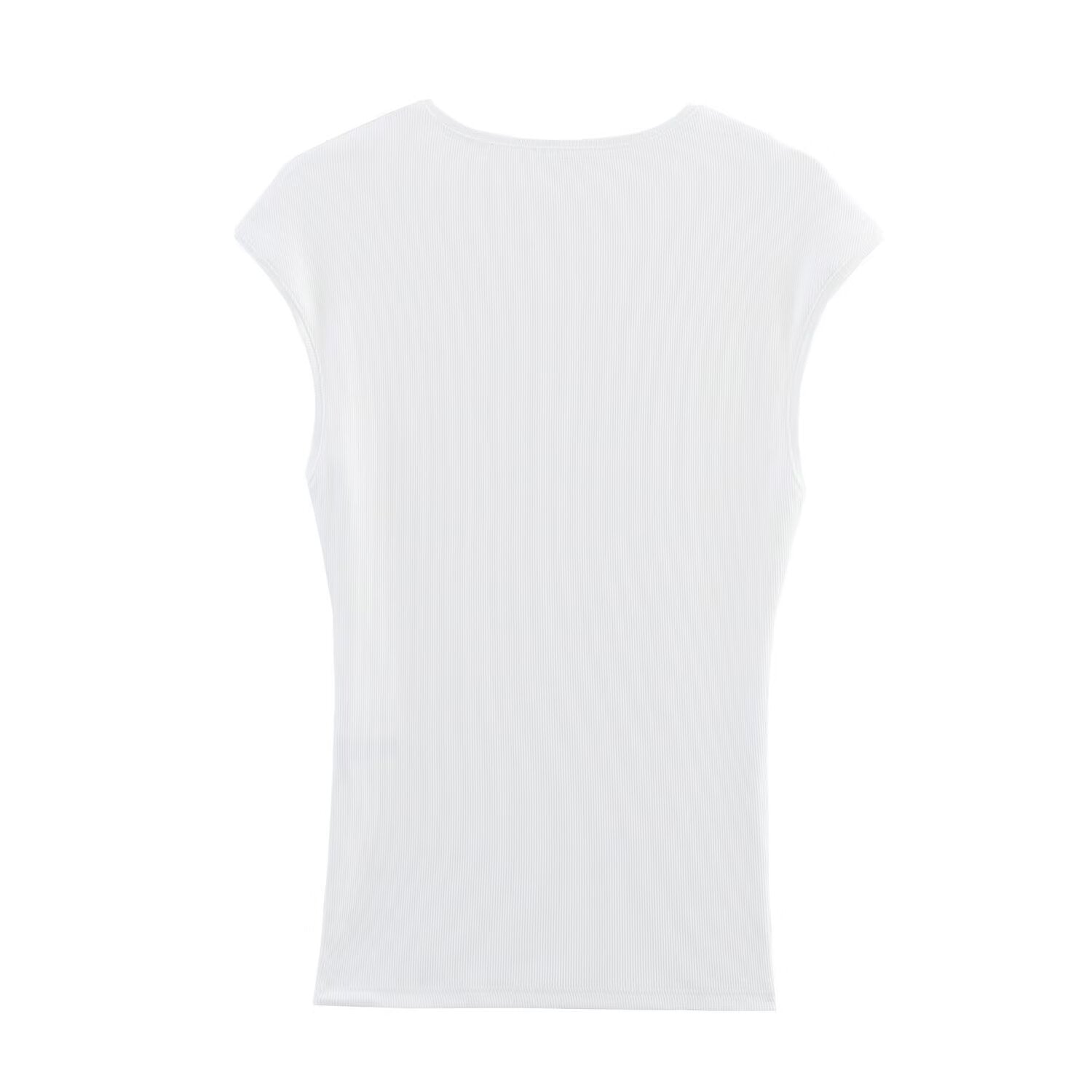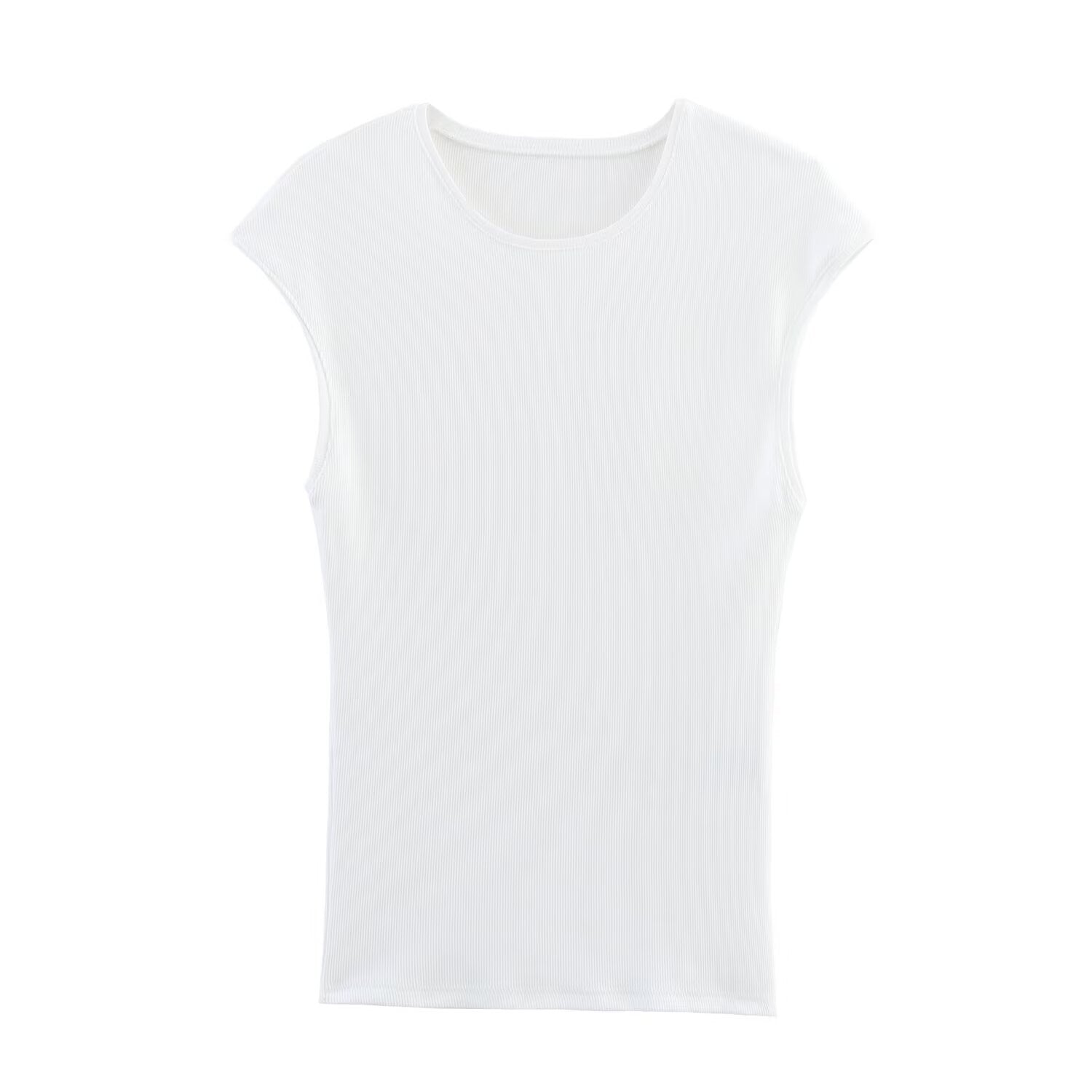 Women's new fashion elastic slim ribbed T-shirt retro sleeveless women's T-shirt chic top