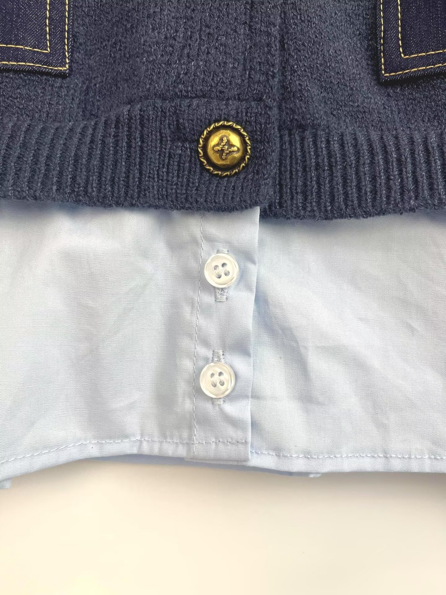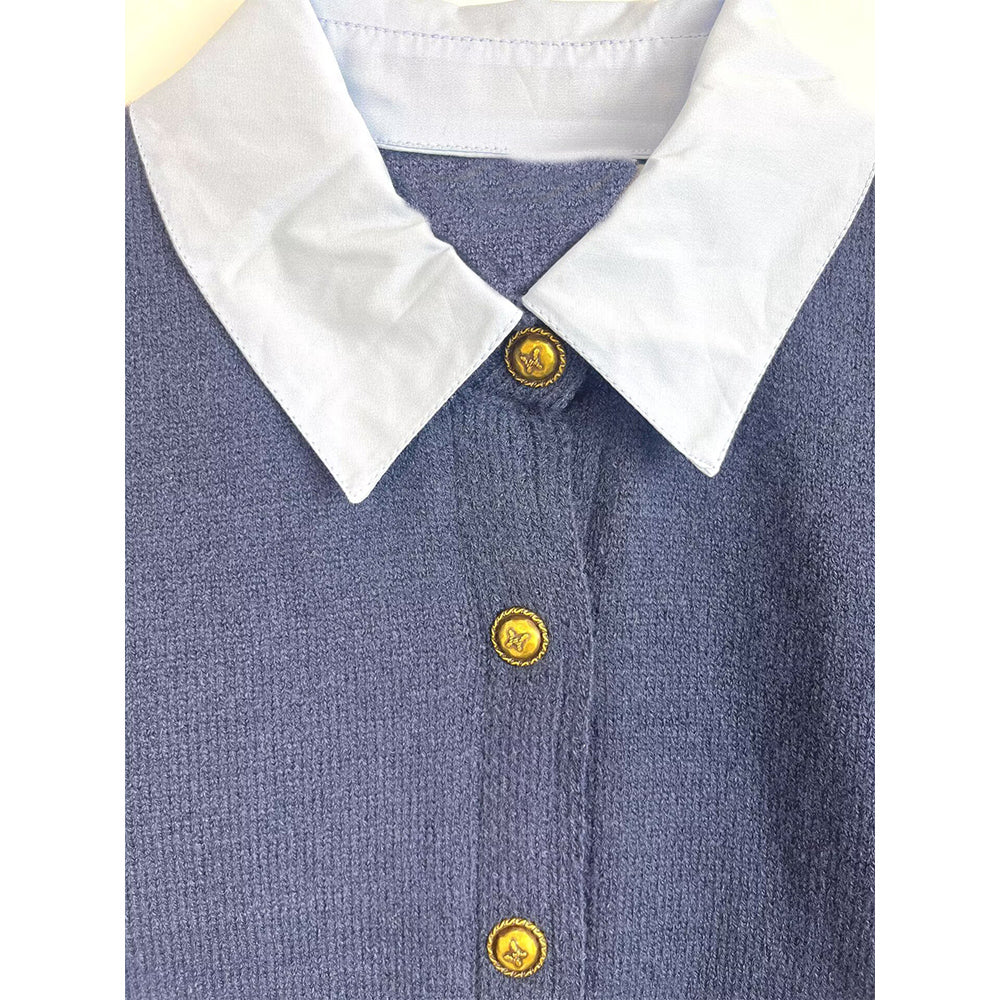 Women's new fashion fake two-piece spliced short knitted cardigan
