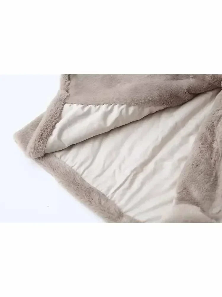 Women's new fashion faux fur effect loose single breasted long style warm coat retro long sleeved Pocket women's coat chic top
