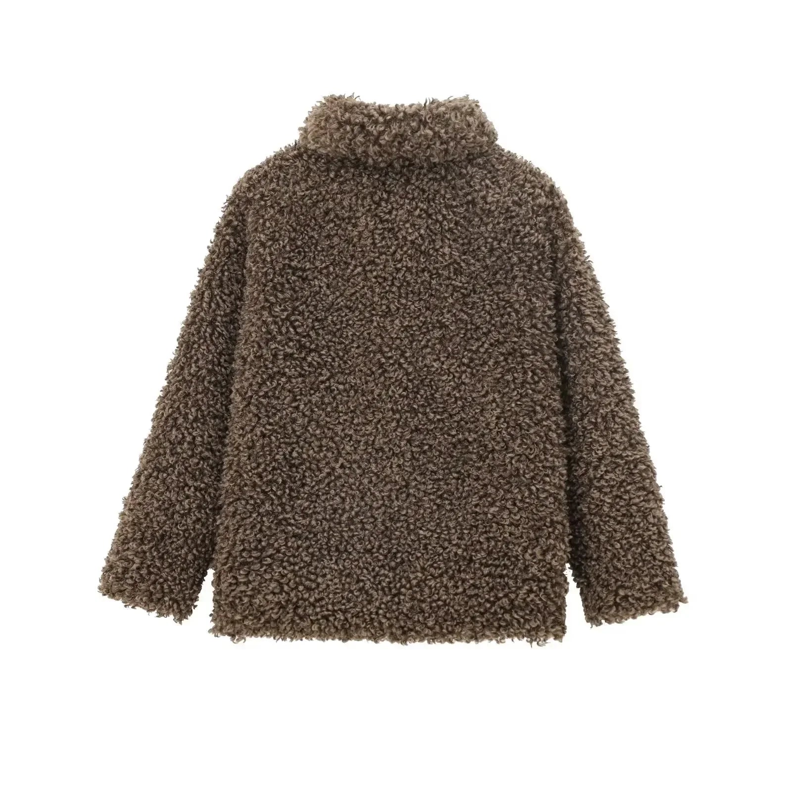 Women's new Fashion faux fur effect short Thick warm Lapel fleece coat retro long sleeved side pocket women's coat chic top