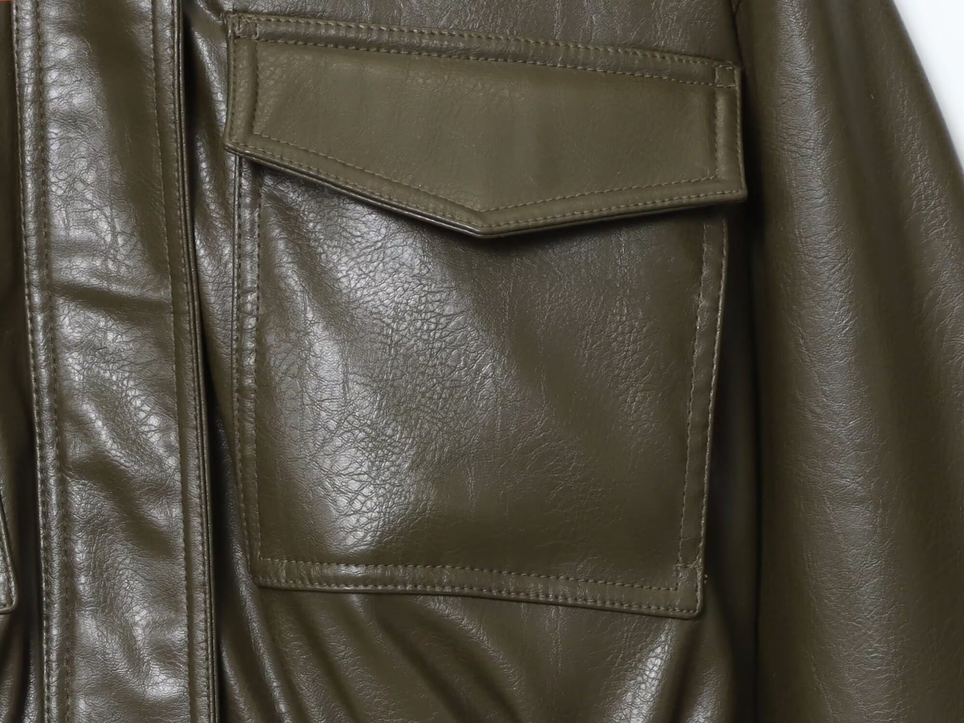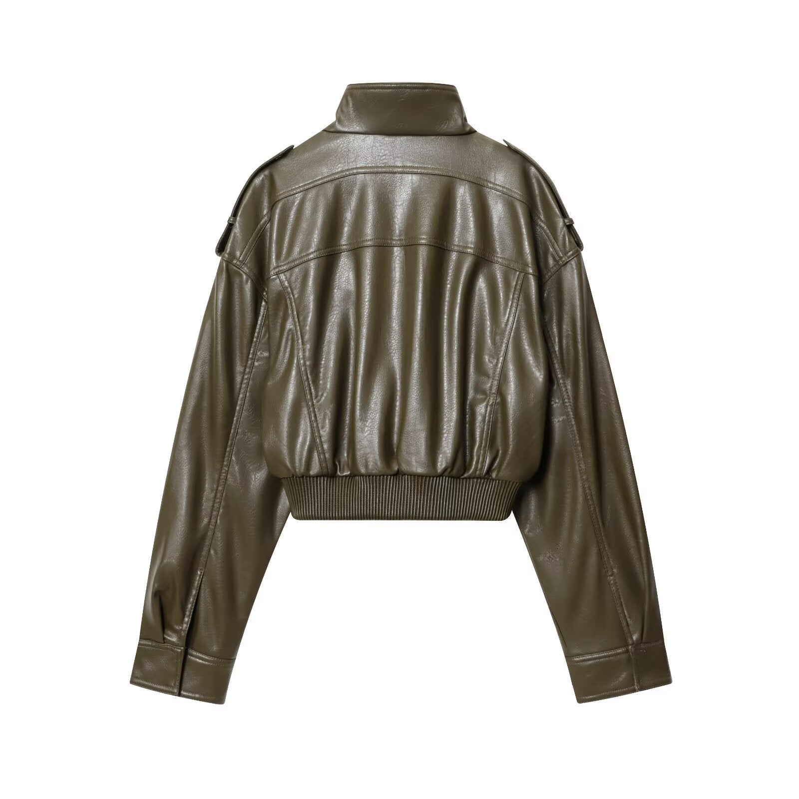 Women's new fashion faux leather effect short stand collar jacket Coat
