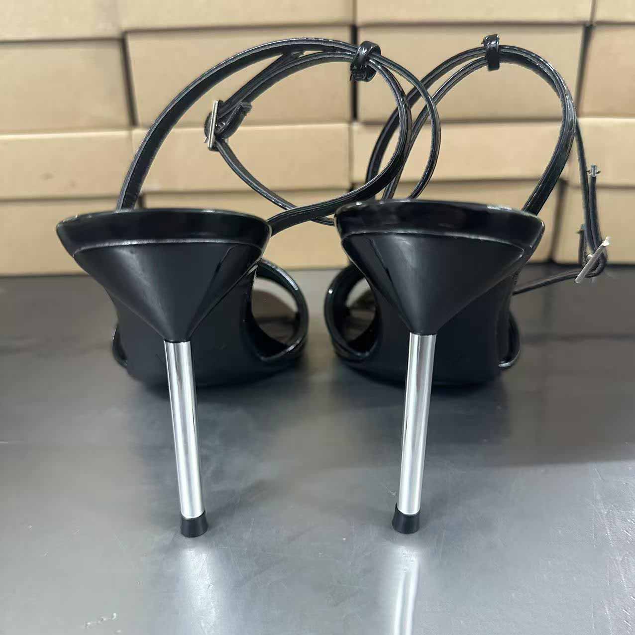 Women's New Fashion Fishmouth Patent Leather Metallic Silver High-heeled Sandals with Fashionable Ladies.