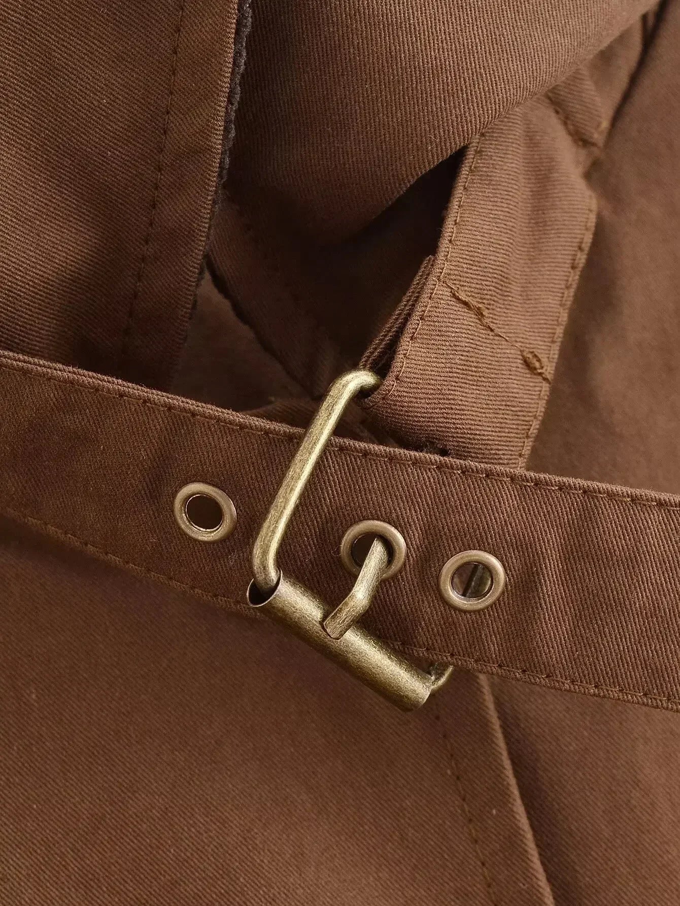 Women's new fashion flap decoration loose single breasted long style Lapel Trench coat retro long sleeved women's coat chic top