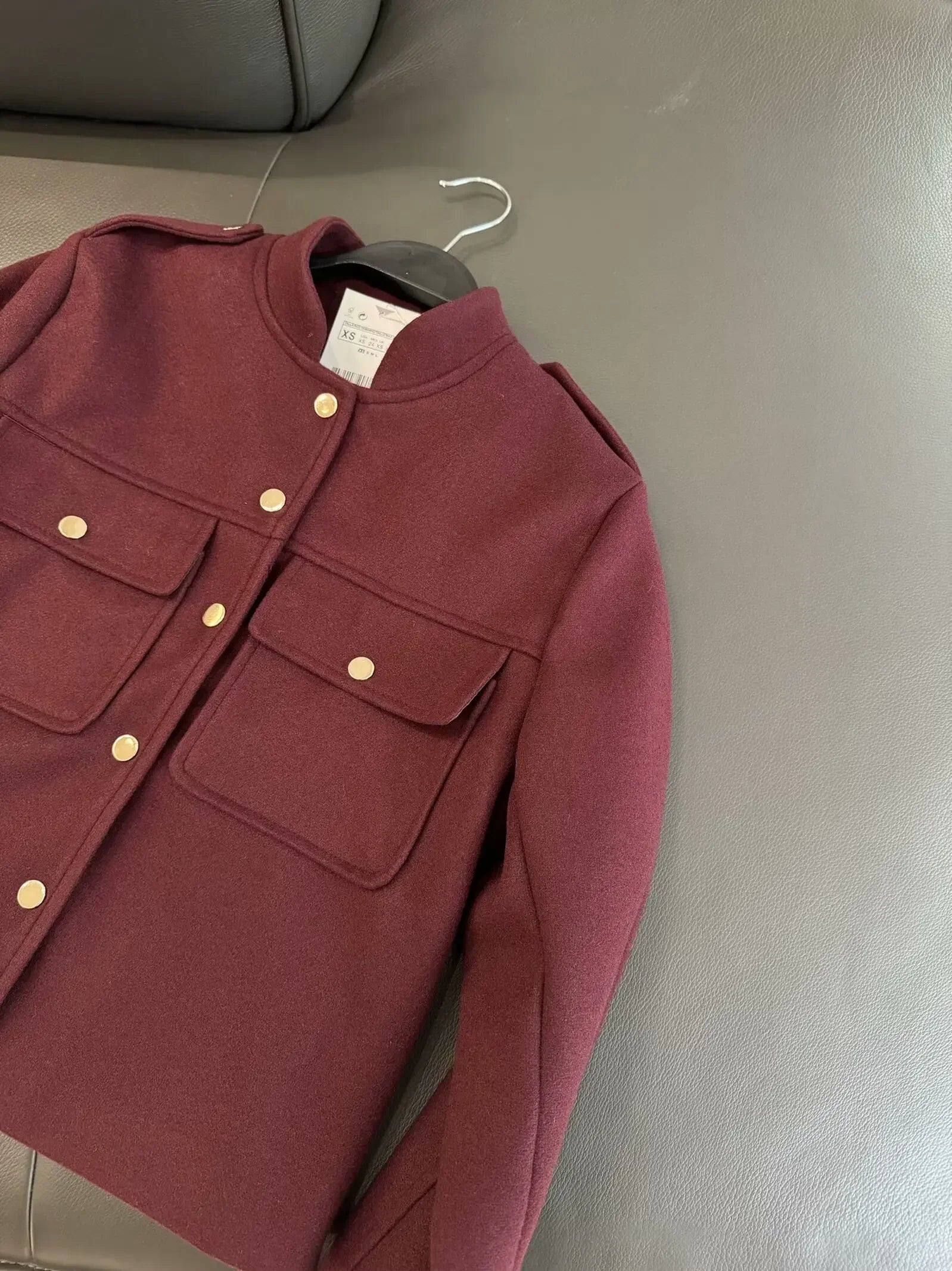 Women's new Fashion flip pocket decoration short single breasted soft texture Jacket retro long sleeved women's Coat chic top