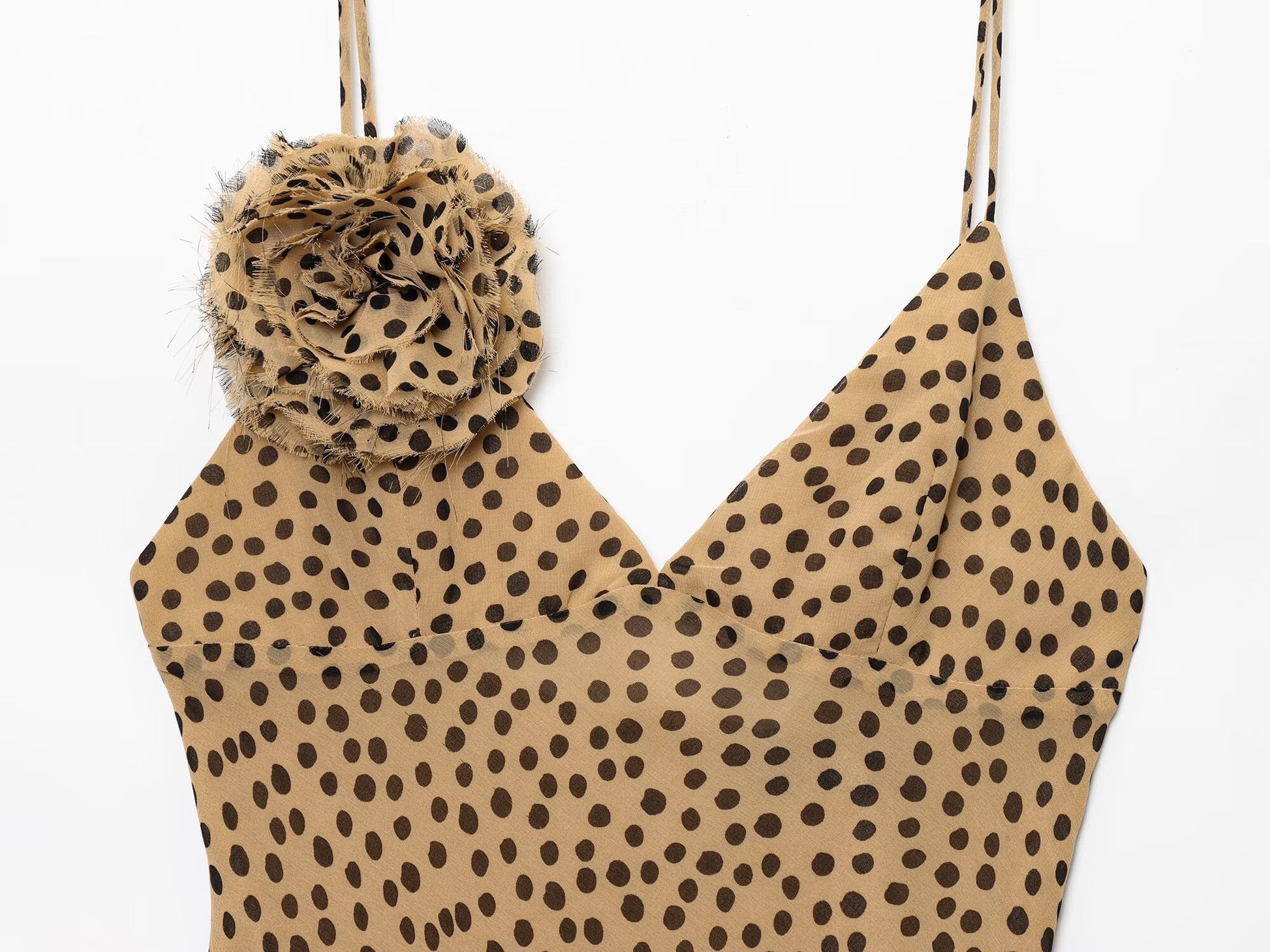 Women's New Fashion floral decoration sexy polka dot print suspender MIDI dress