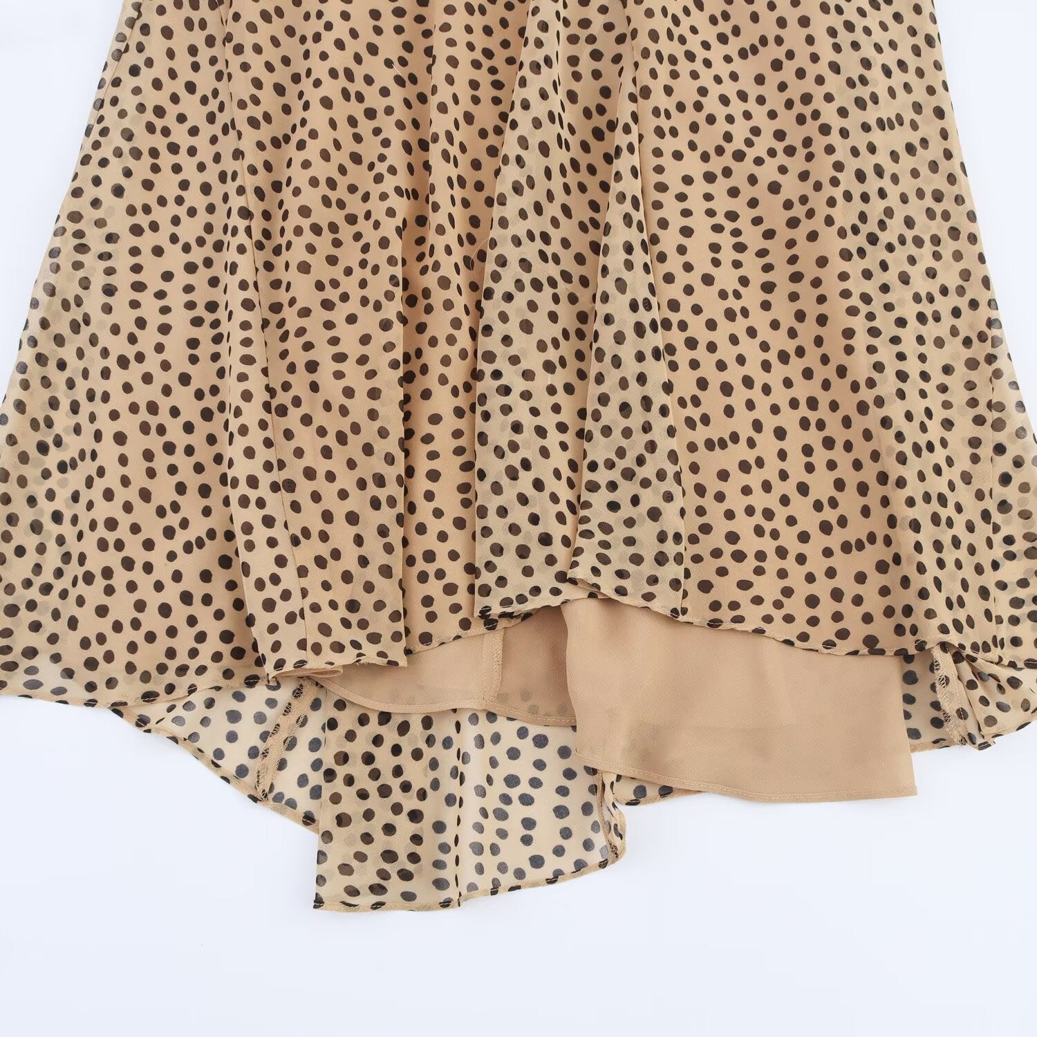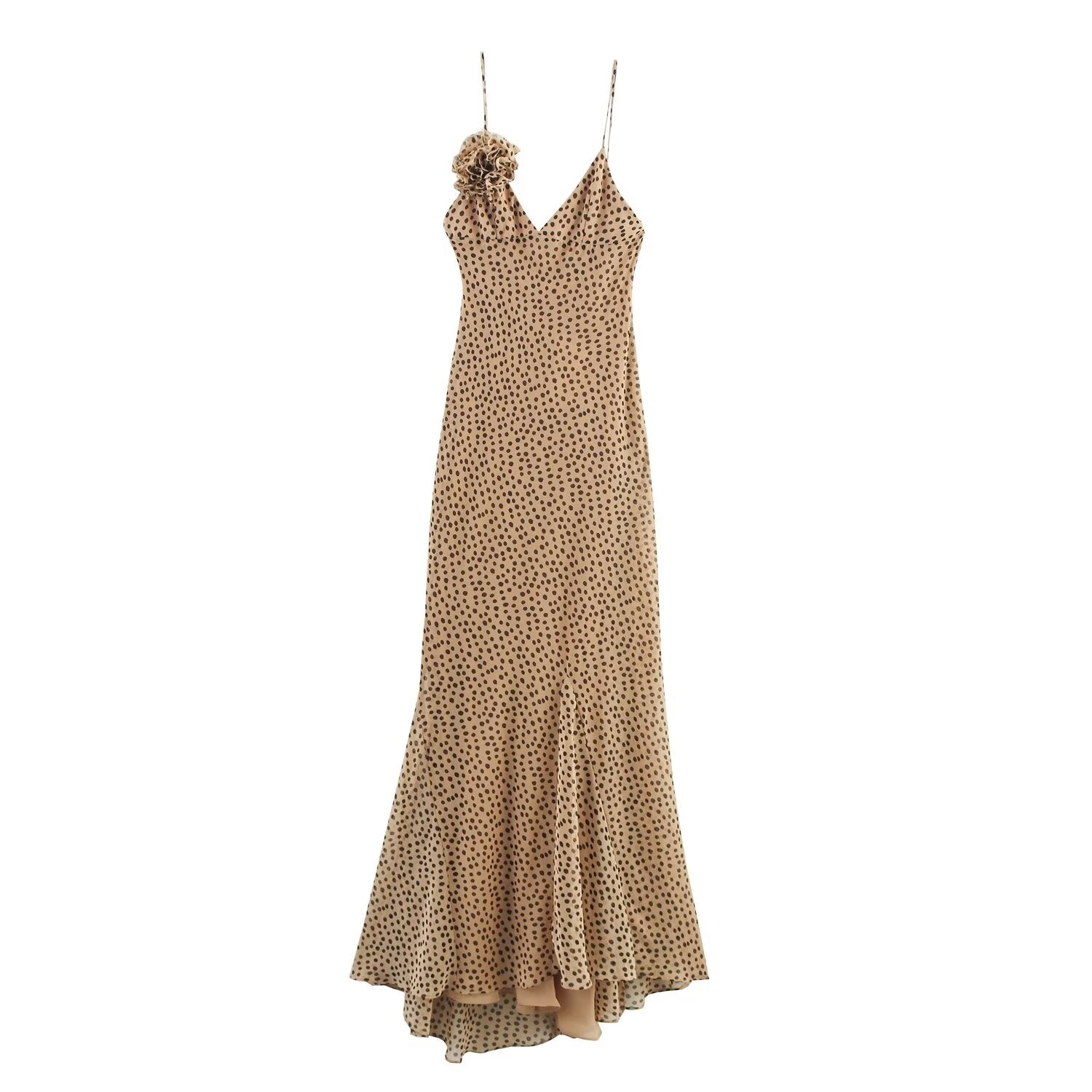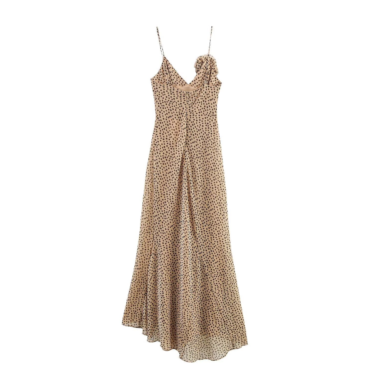 Women's new fashion flower decoration polka dot print suspender MIDI dress