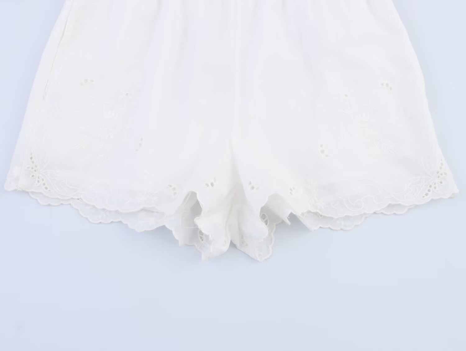 Women's New Fashion Flower Embroidered Pajama Style Casual Shorts