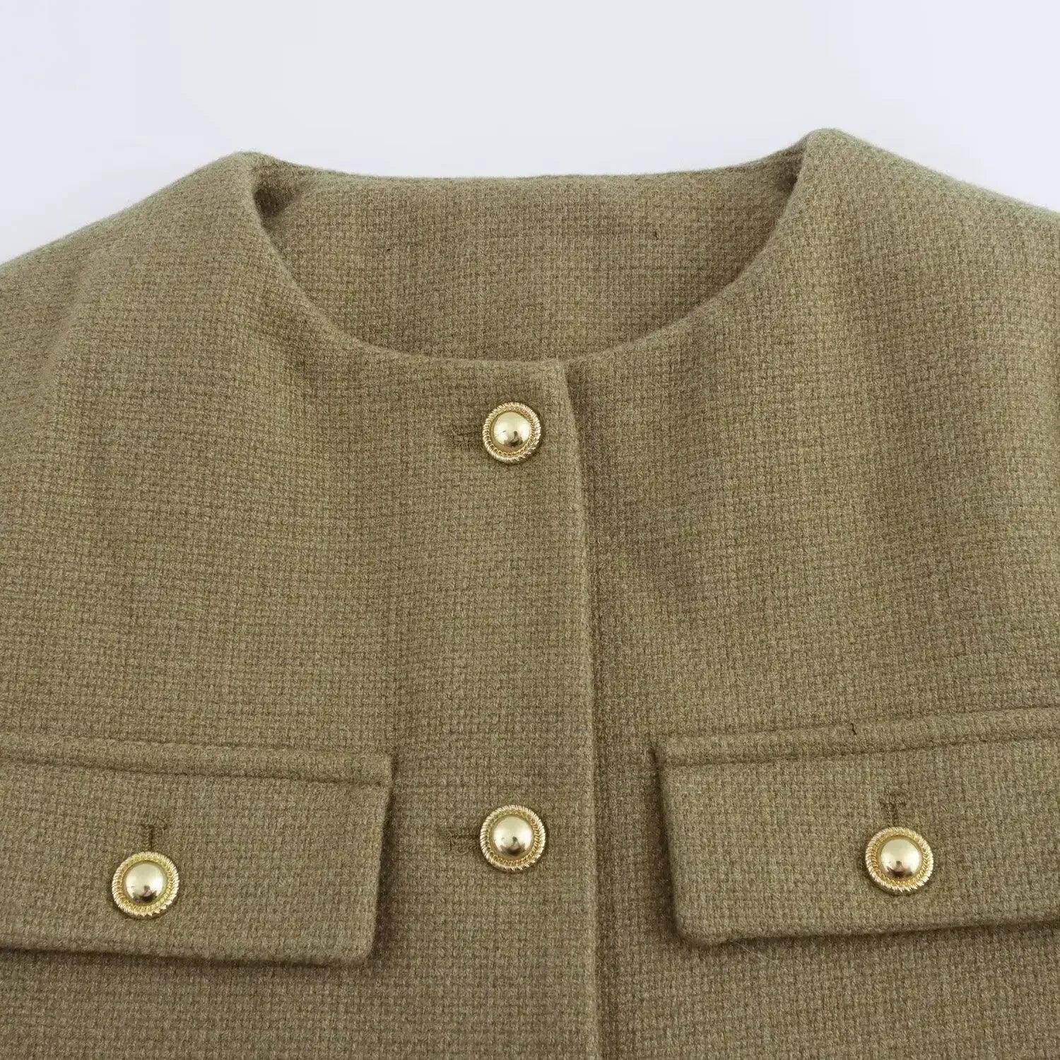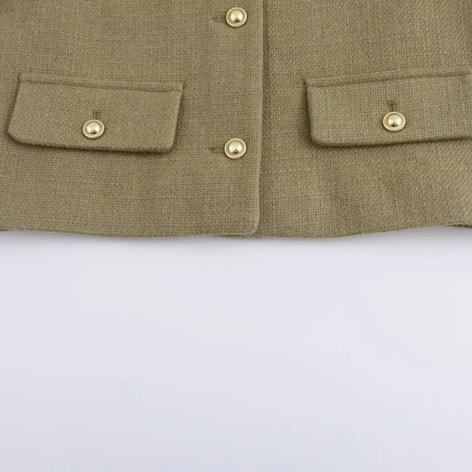 Women's new Fashion gold button flip decoration casual short O-Neck suit jacket coat retro long sleeved women's Coat chic top