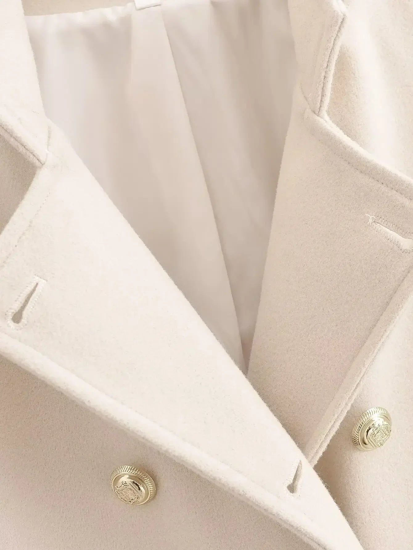 Women's new fashion gold double breasted decoration slim casual woolen coat retro long sleeved side pocket women's coat Chic top