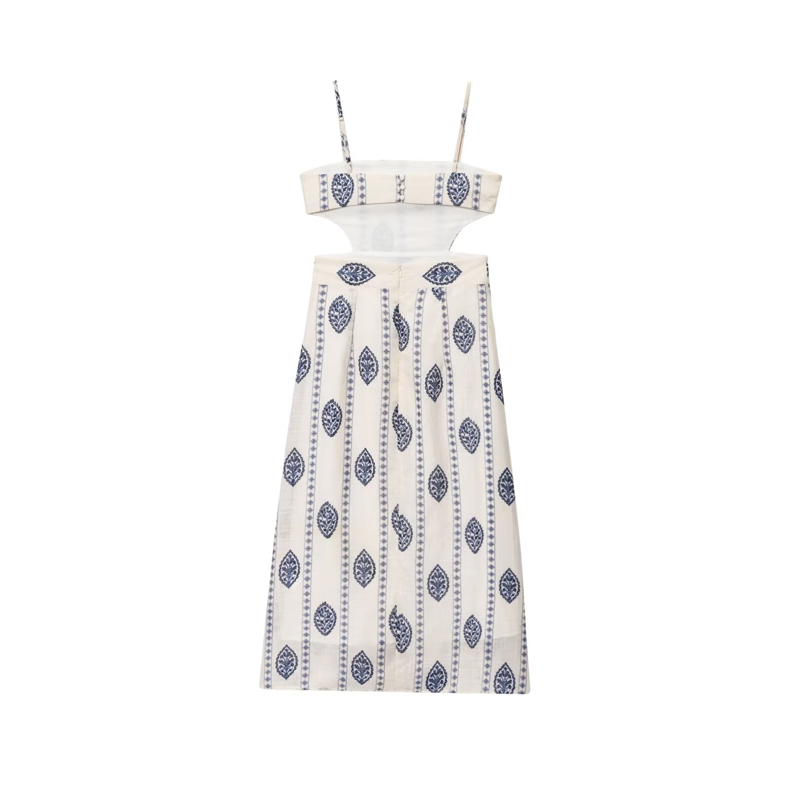 Women's New Fashion Hollow Design Printed suspender Midi Dress