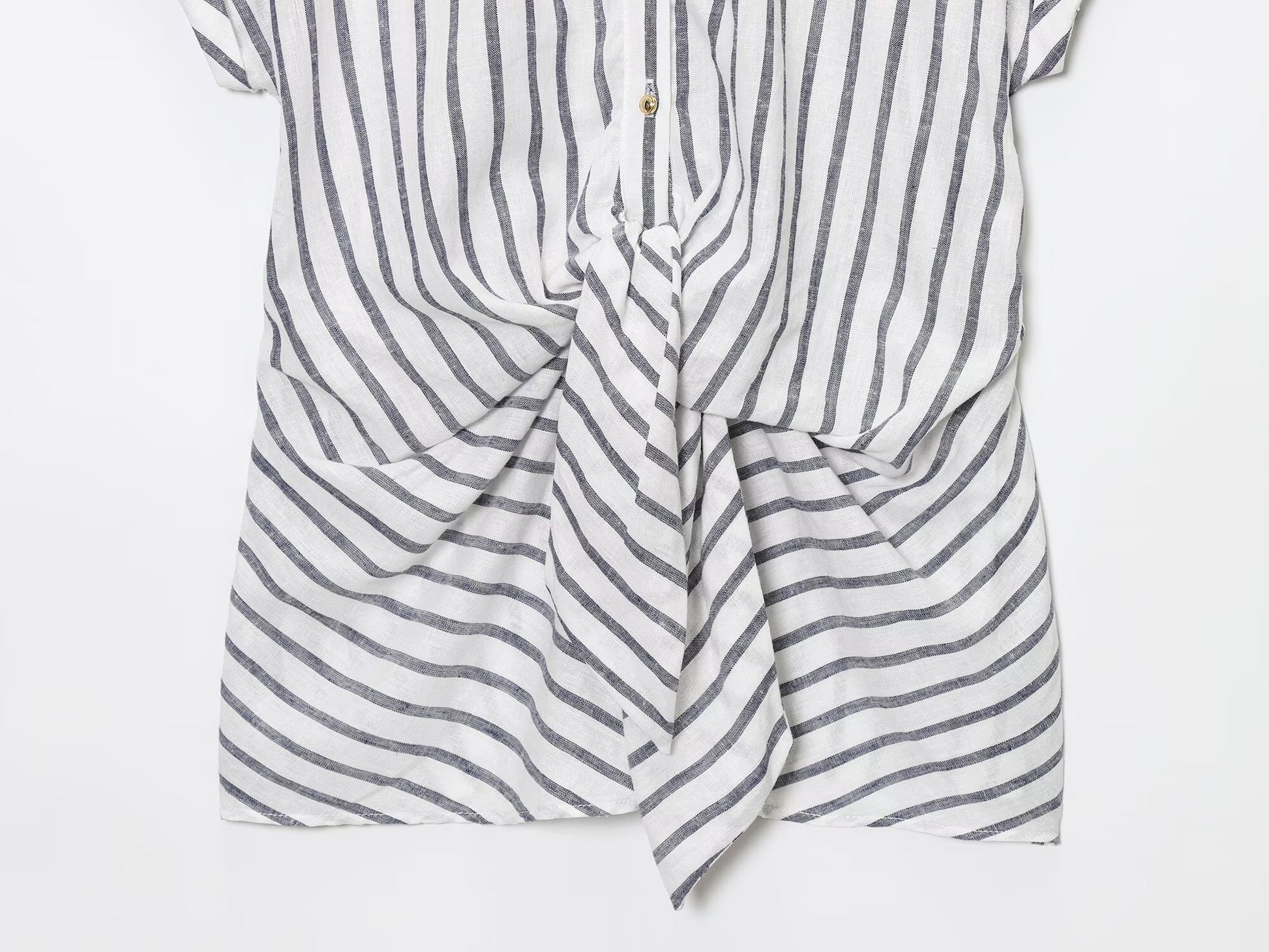 Women's new fashion knot decoration linen blended striped shirt
