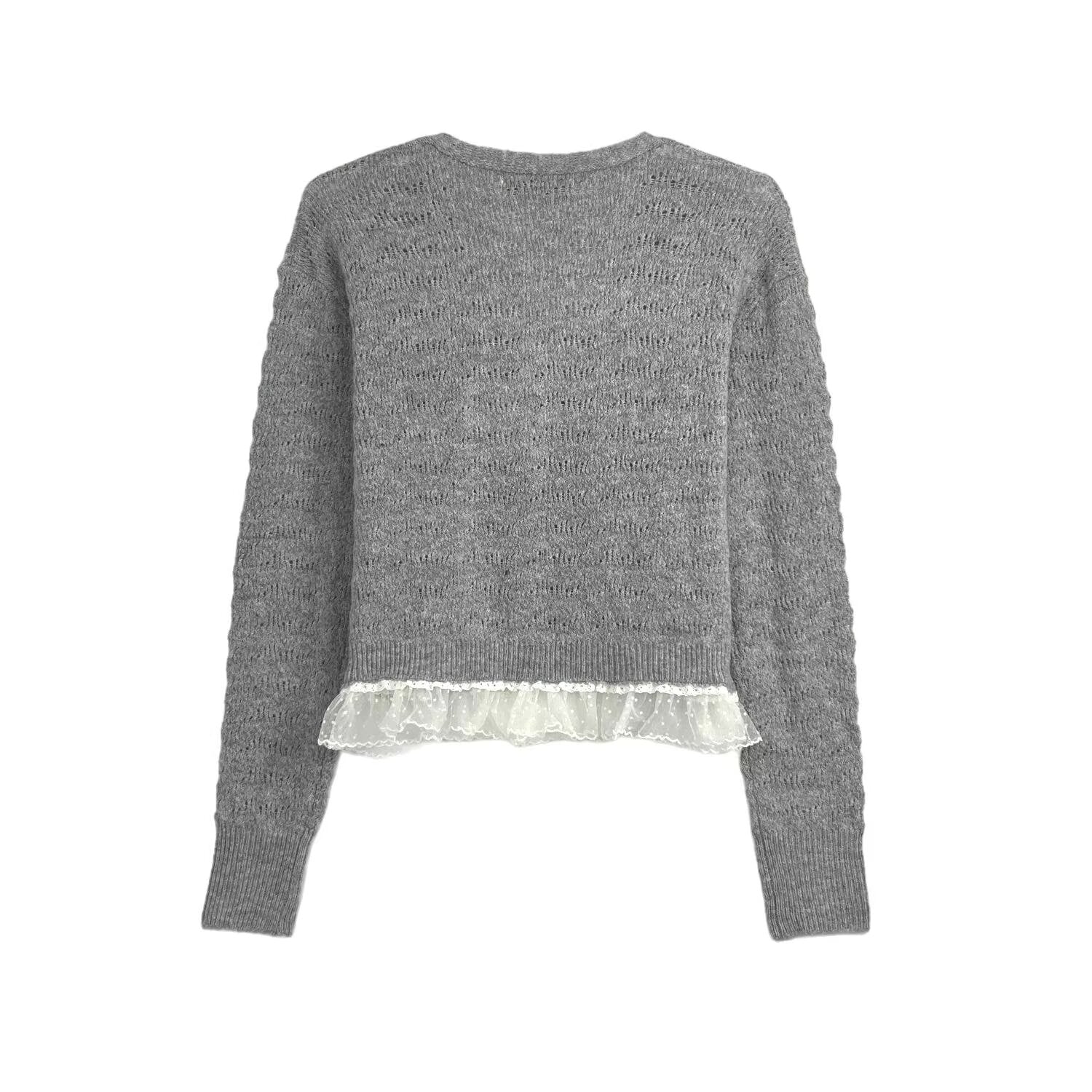Women's new fashion lace patchwork V-neck knitted cardigan