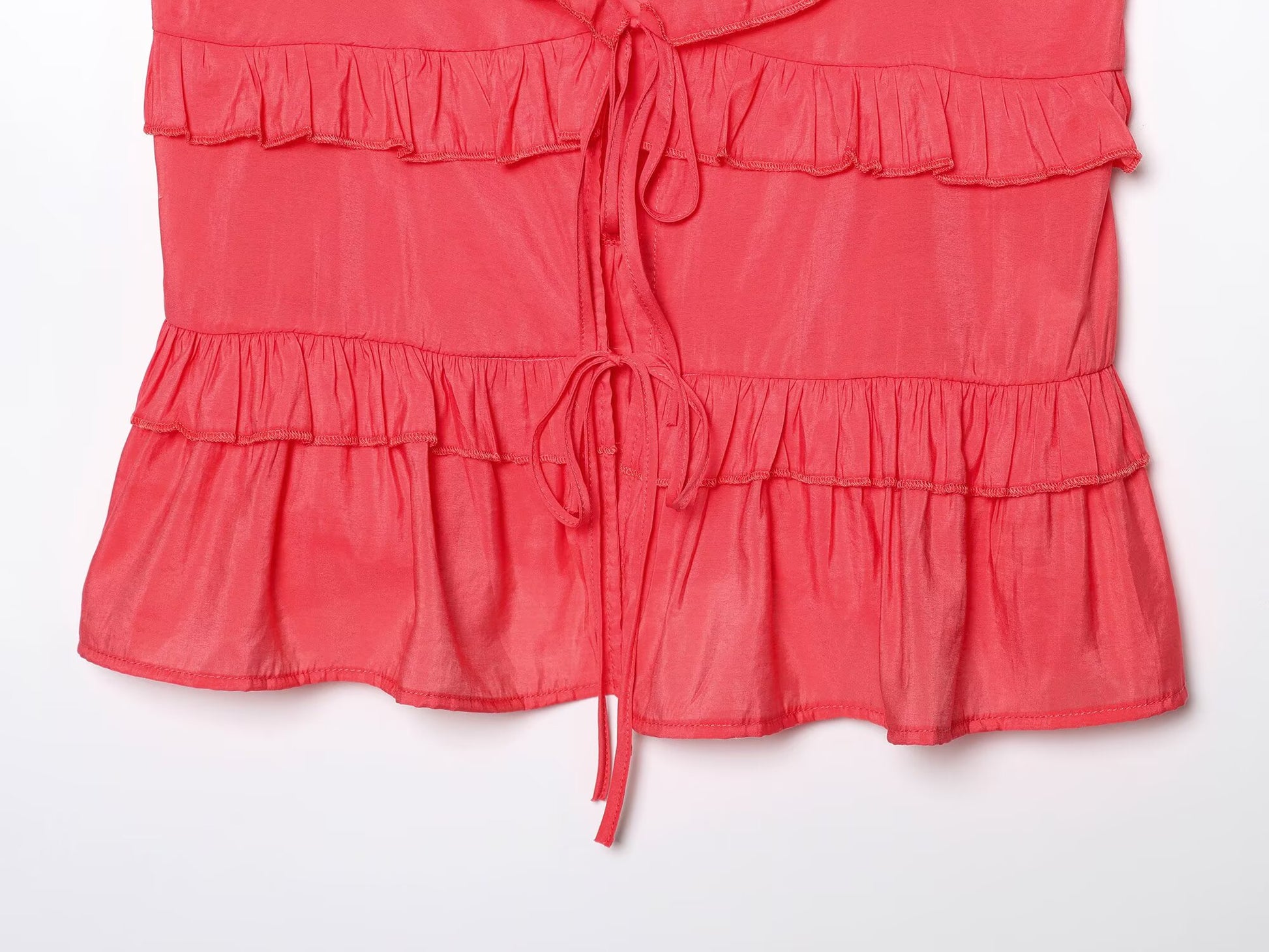 Women's new fashion Lace up layered decoration sleeveless backless suspender top
