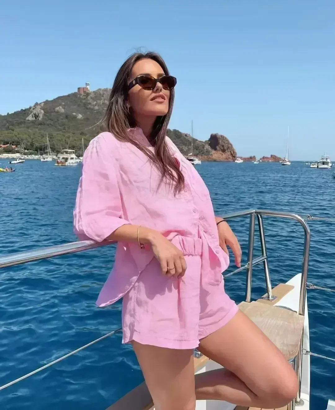 Women's new fashion large pocket decoration loose linen blend casual shirt retro short sleeved Button up women's shirt