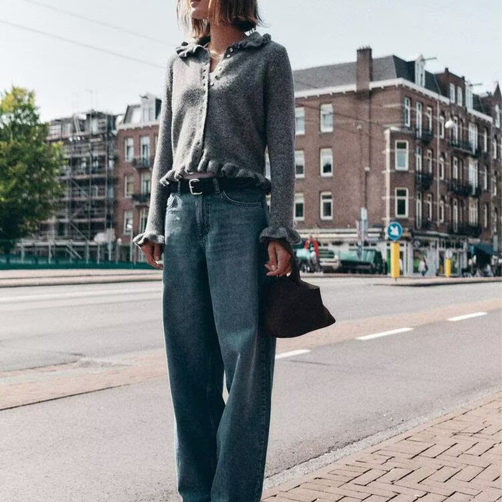 Women's new fashion layered decoration lapel long sleeved knitted cardigan