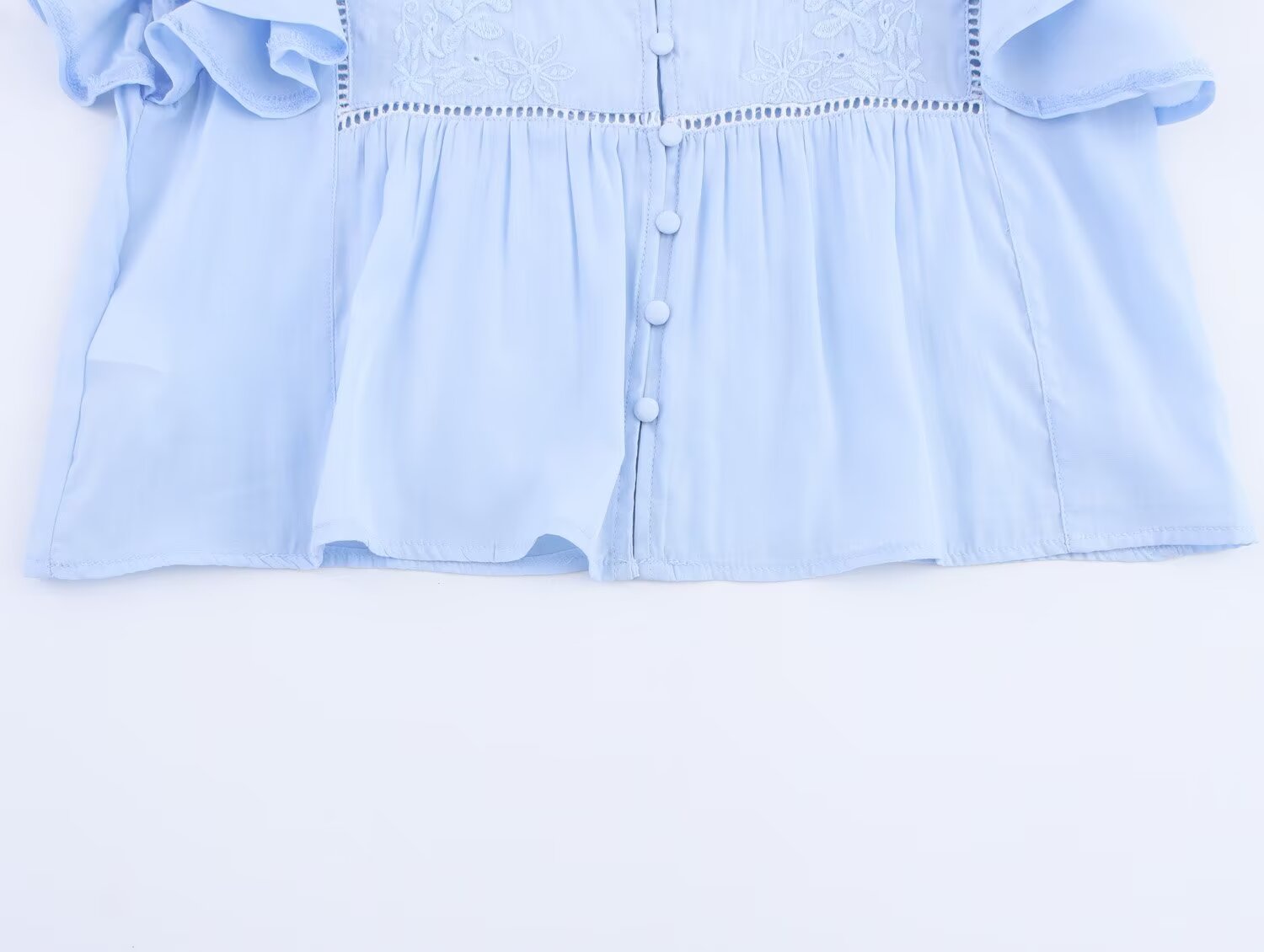 Women's new fashion layered decoration short sleeved embroidered shirt