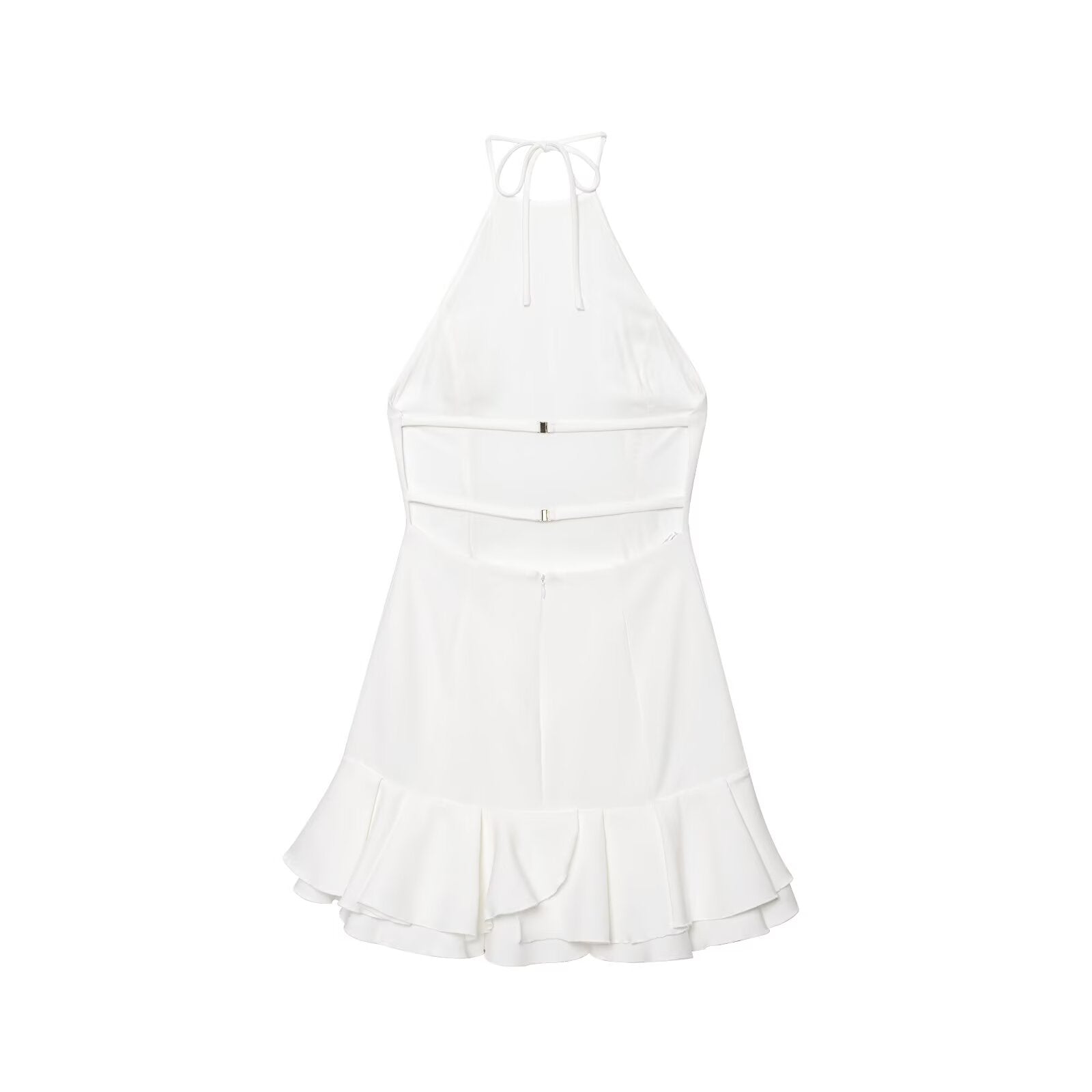 Women's new fashion layered decoration slim backless hanging neck mini dress