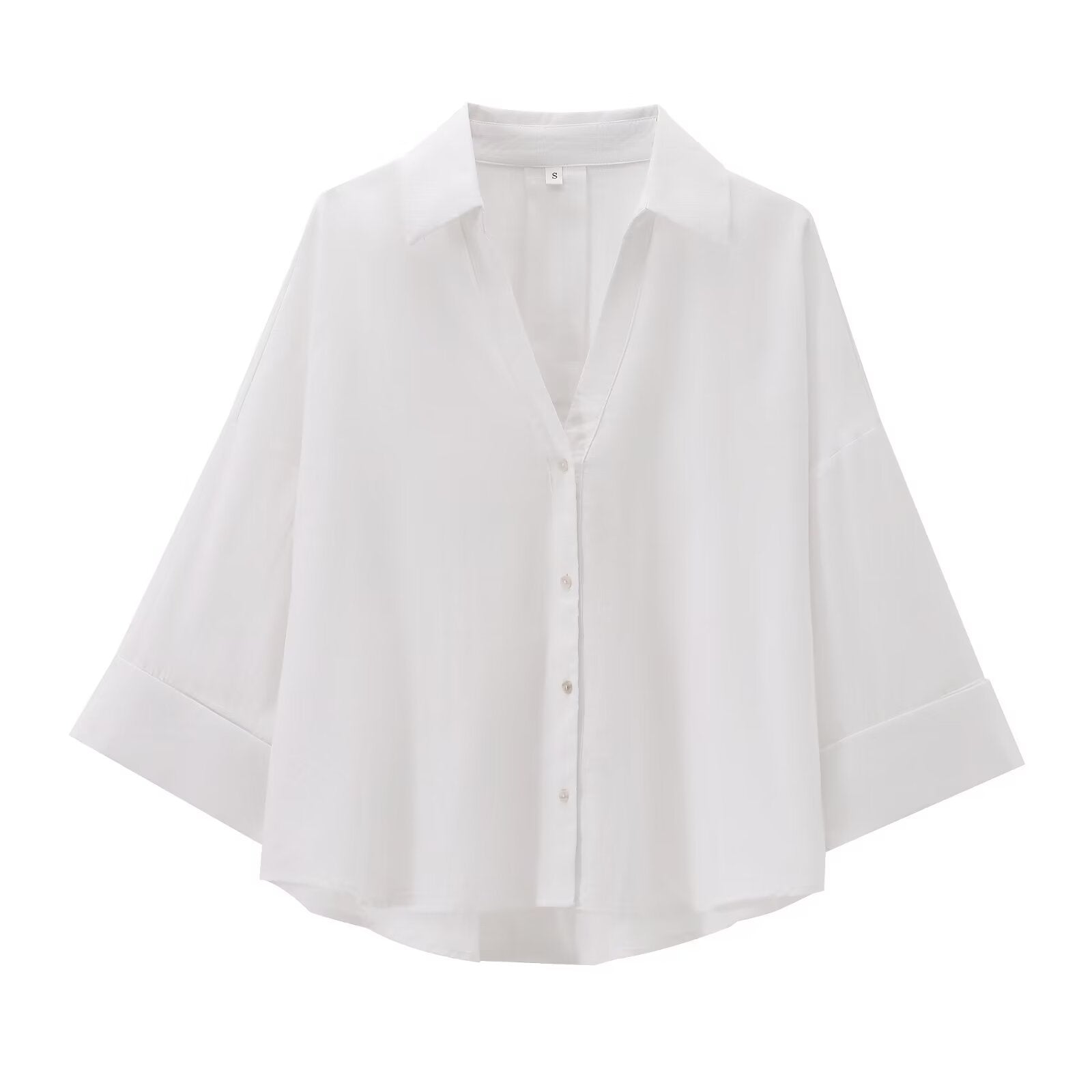 Women's New Fashion Linen Blended Wide Sleeve Shirt