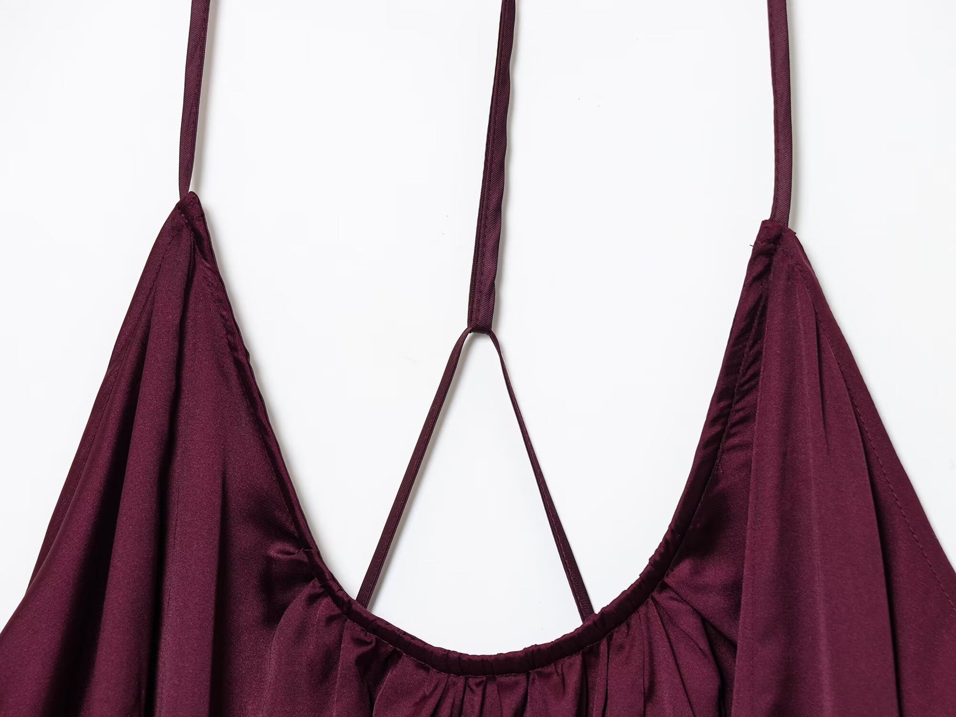 Women's New Fashion Loose Satin Texture suspender Midi Dress