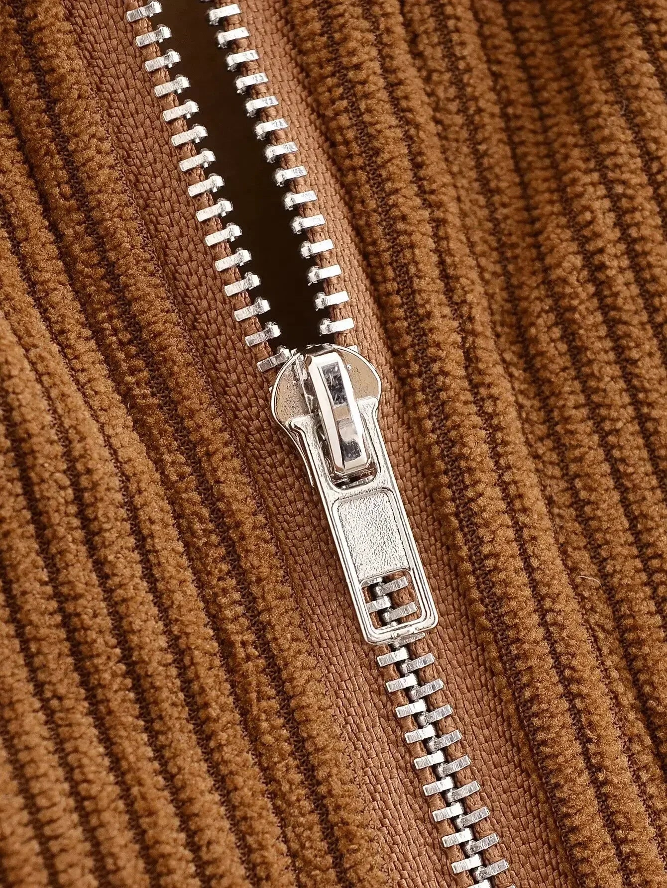 Women's new fashion loose side pocket casual versatile corduroy jacket Coat retro long sleeved zipper women's Coat chic top