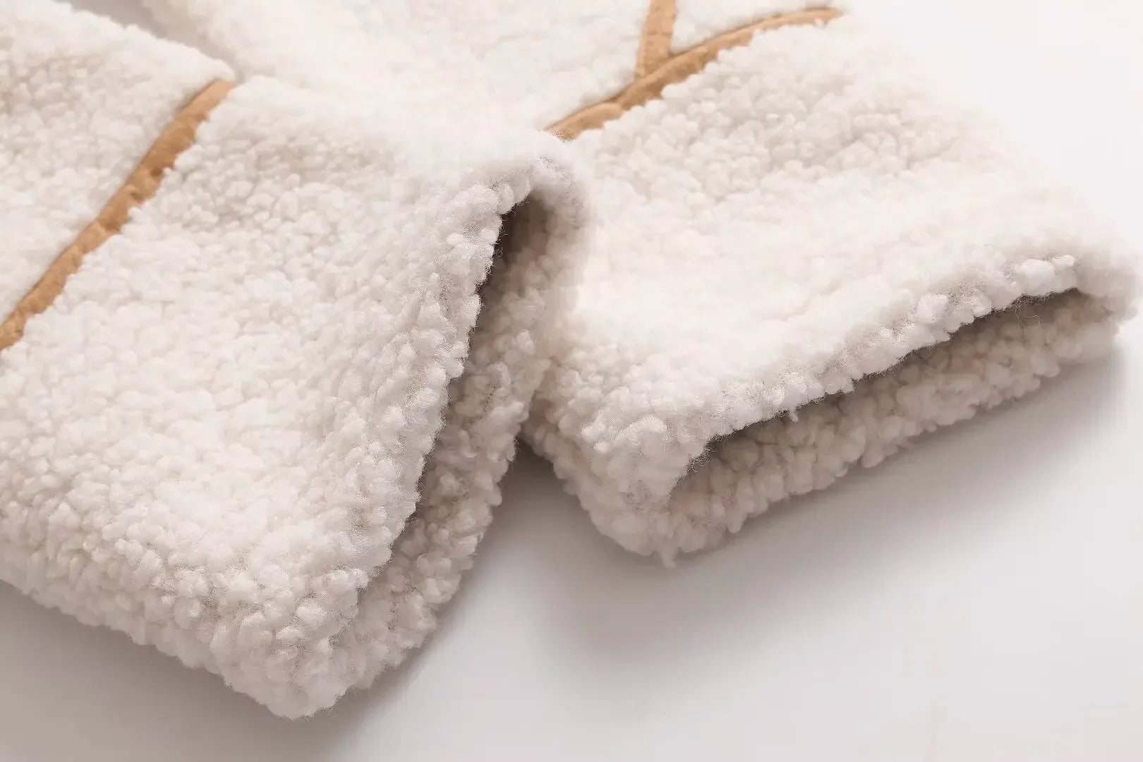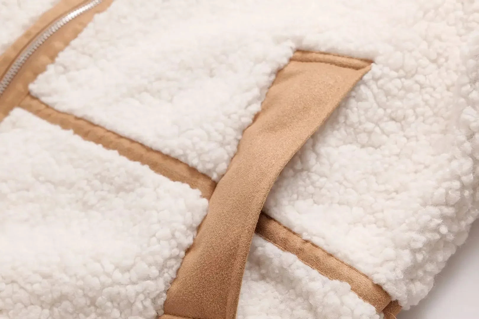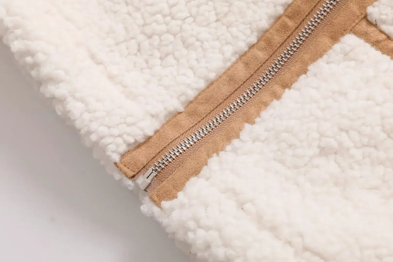 Women's new Fashion loose side pocket warm Fur Faux Leather stand collar jacket coat retro long sleeved women's coat chic top